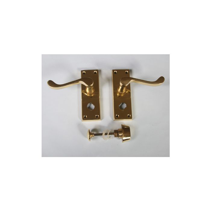 DL55WC Polished Brass Victorian Scroll Privacy Plate Door Handle