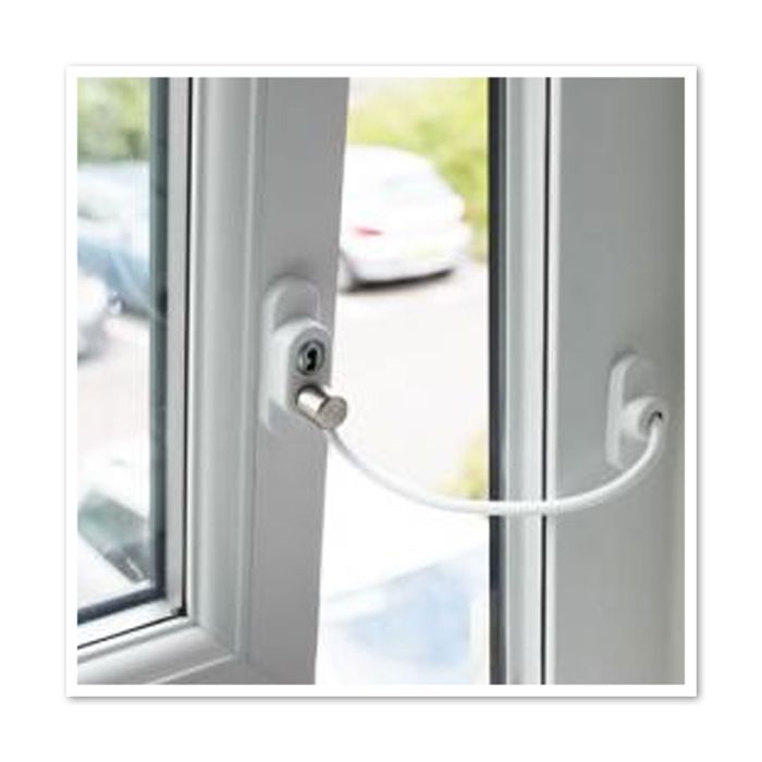 Penkid White Window & Door RestrictorDesigned to prevent children from falling out of windows, the Penkid in white is a key lockable window restrictor.The window restrictor is provided with a key so that it can be locked as required and can be opened as necessary.The window restrictor is suitable for use on all kinds of windows and even doors including pvc, aluminium, wooden and metal profiles. The restrictor cable is 20cm long and can endure up to a 550 kg force.The Penkid Window Restrictor is supplied with a 5 year warranty and is CE marked for added assurance.