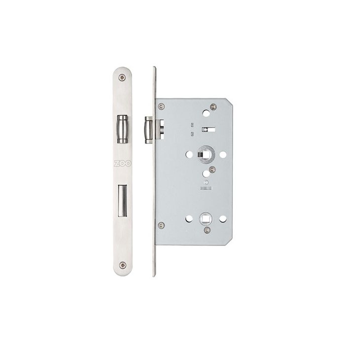 The Zoo ZDL7260RLL Lift to Lock 60mm DIN Roller Bathroom Sashlock with 72mm Centres and Radius Forend