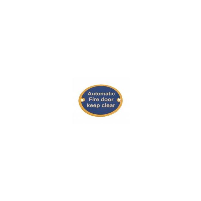 Automatic Fire Door Keep Clear 75Mm Polished Brass Sign