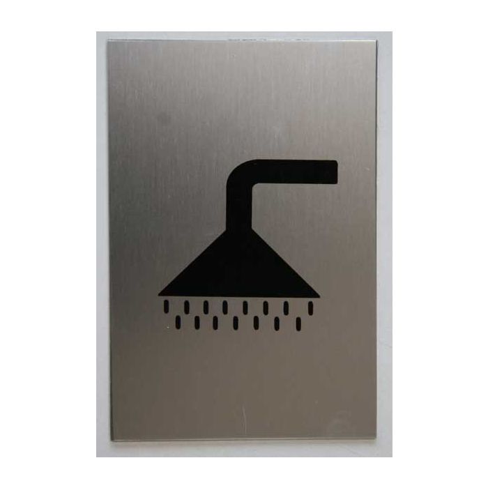 152Mm X 102Mm Satin Aluminium Shower Symbol Screen Printed Self Adhesive
