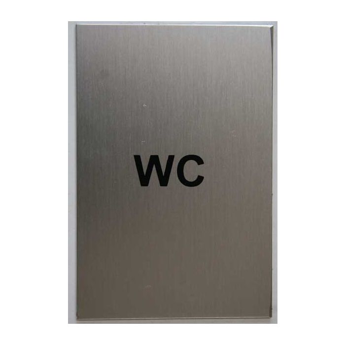 152Mm X 102Mm Satin Aluminium Wc Symbol Screen Printed Self Adhesive