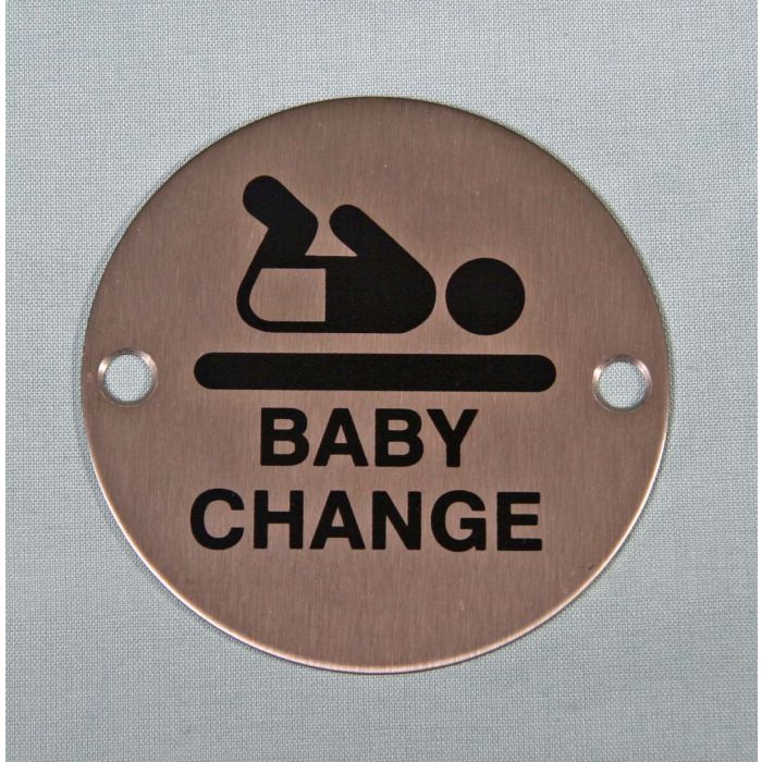Baby Change Symbol 75Mm Dia Satin Aluminium Screen Printed Sign Drilled + Csk