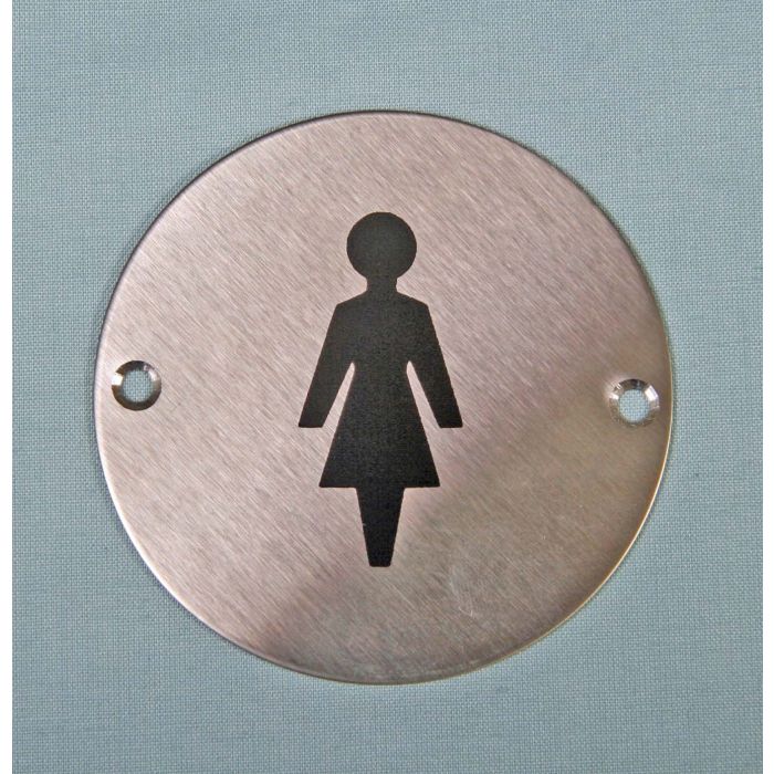 Female Symbol 75Mm Dia Satin Stainless Screen Printed Sign Drilled + Csk