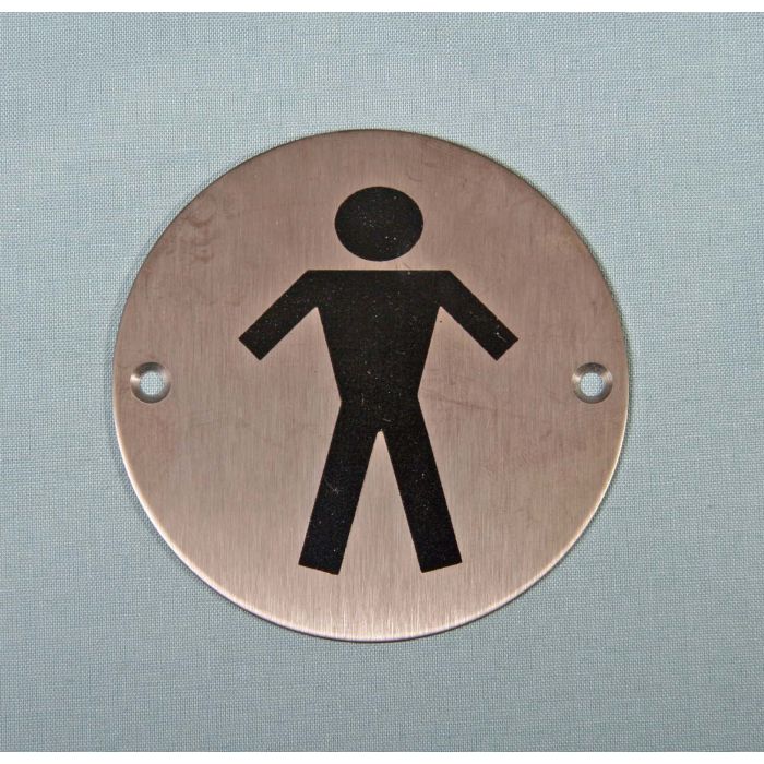 Male Symbol 75Mm Dia Satin Stainless Screen Printed Sign Drilled + Csk