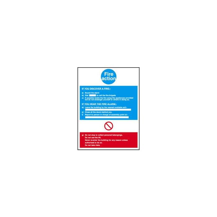 Fire Action If You Discover 200Mm X 300Mm 1Mm Rigid Plastic Sign