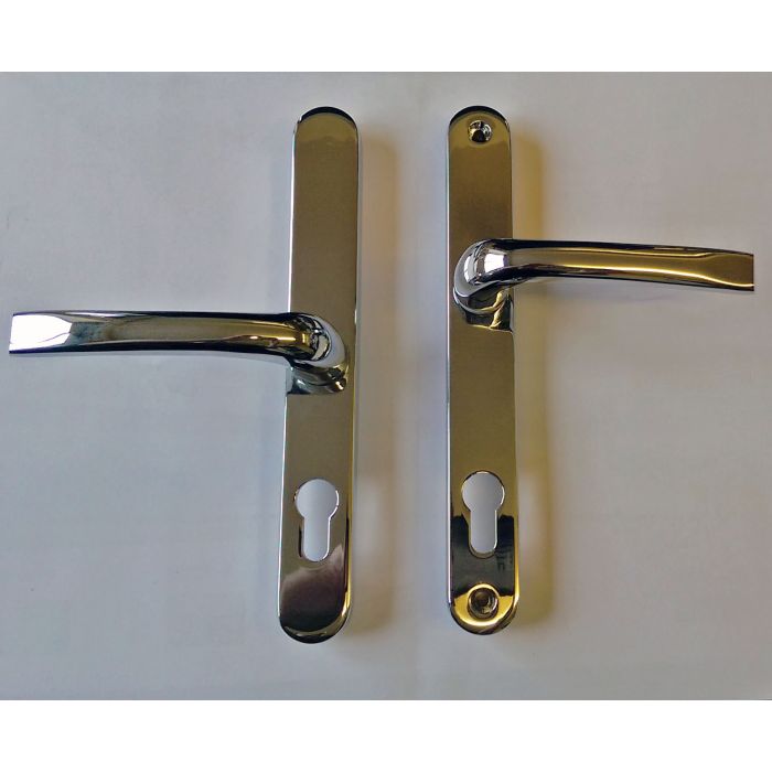 Mila ProLinea uPVC Lever/Lever Door Furniture 92/62PZ, 240mm Backplate, 211mm Bolt Centres Chrome (050449)