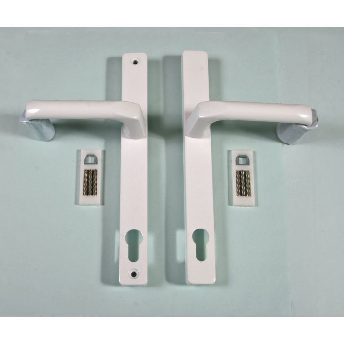Millenco White 117mm Centres Lever Handle 278mm Plate, 240mm Bolt Centres