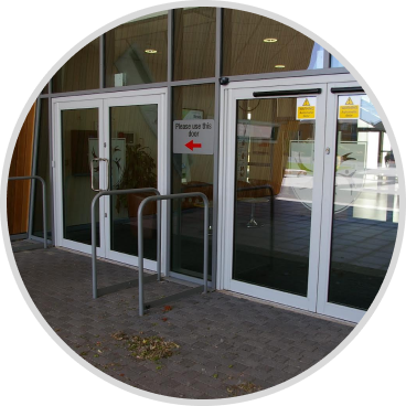 Automated bespoke aluminium doors, manufactured for all settings including shopfronts, healthcare, education, and hospitality.