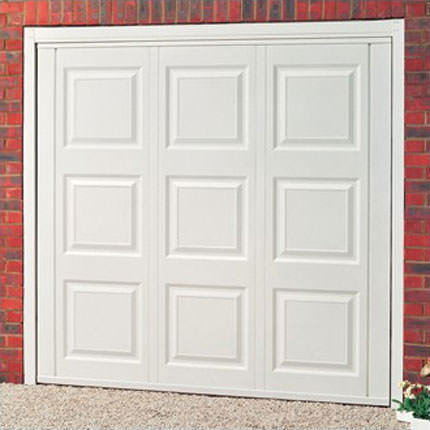 Cardale Georgian steel up and over garage door. Available in 8 popular colours as well as a laminate option in Golden Oak or Rosewood. Optional extras include a maintainance free steel frame and a four point latching kit