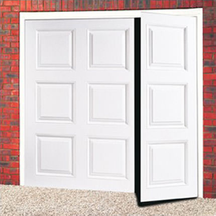 Cardale Regal ABS plastic side hinged garage door. ABS doors have an impact resistant white low gloss finish which closely matches to white PVCu doors and windows. The door is complete with a maintenance free steel frame with an optional upgrade to high security locking