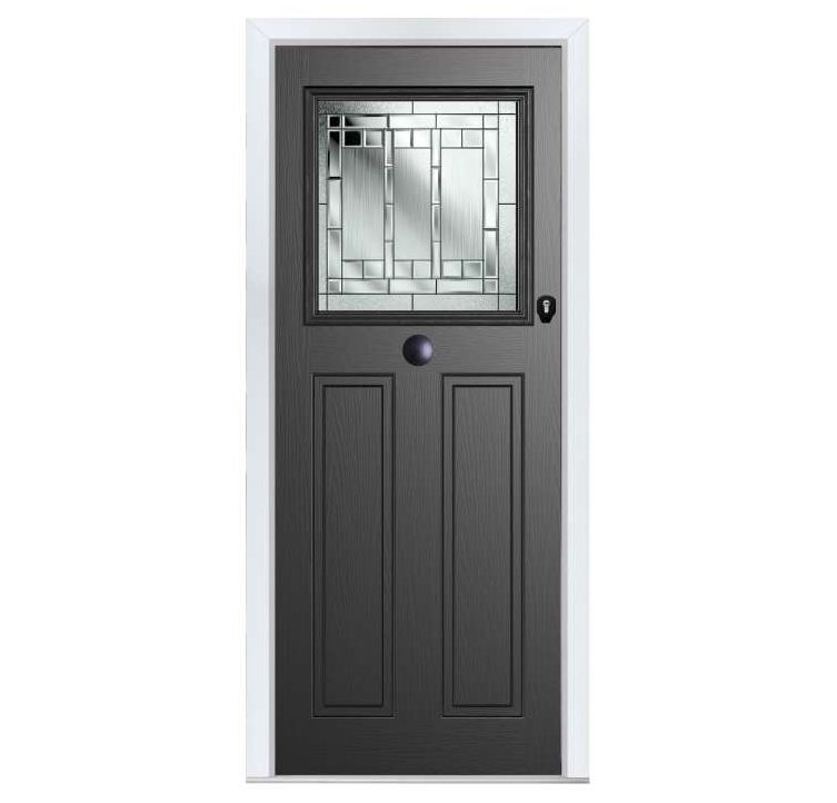 Comp Door Axwell composite entrance door in anthracite grey. With a palette of 16 colours, 8 diverse glazing styles and a wide range of door furniture. This door comes as standard with PAS24 compliant auto-fire multi-locking eliminating the need to lift the handle and reinforcing the safety of your home. Along with market leading U-values, robust timber core and impeccable build quality this door should improve both the aesthetics and security of your home.