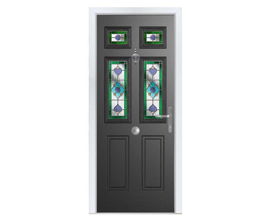 Comp Door Middleton 4 composite entrance door. With a palette of 16 colours, 7 diverse glazing styles and a wide range of door furniture. This door comes as standard with PAS24 compliant auto-fire multi-locking eliminating the need to lift the handle and reinforcing the safety of your home. Along with market leading U-values, robust timber core and impeccable build quality this door should improve both the aesthetics and security of your home.