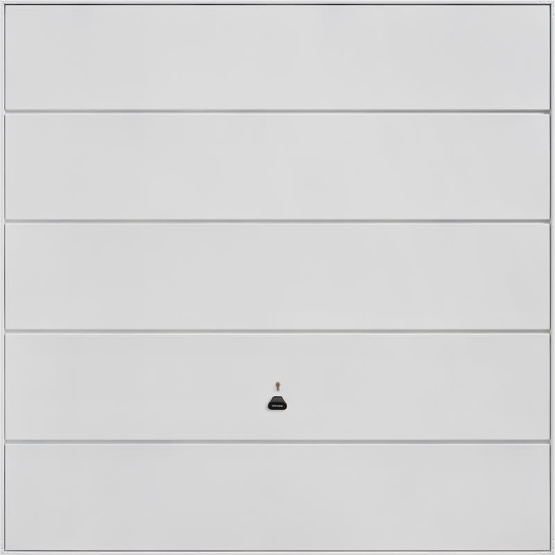 Garador Ascot steel up and over door in white as standard but also available in other colours. Optional extras include a maintenance free steel frame and a 4 point locking upgrade.