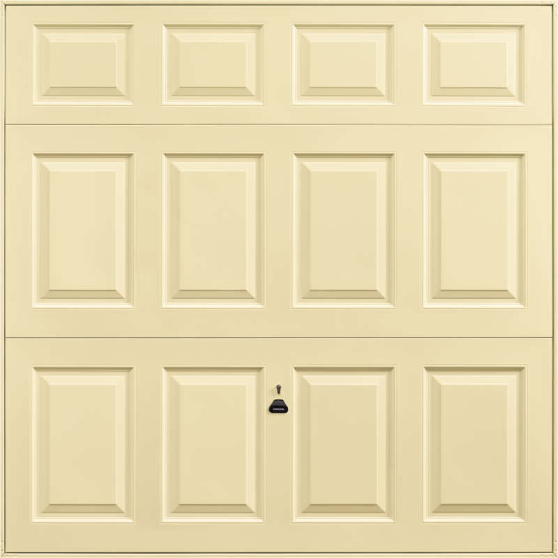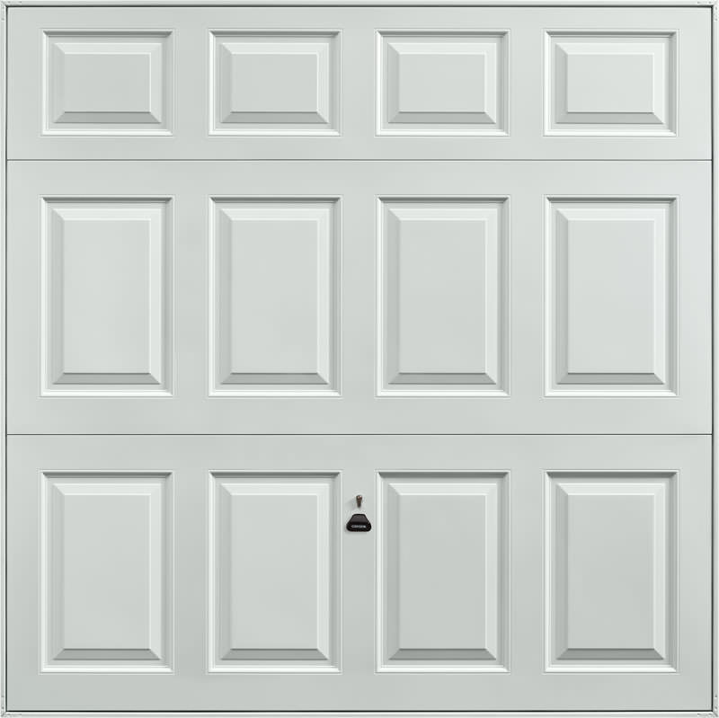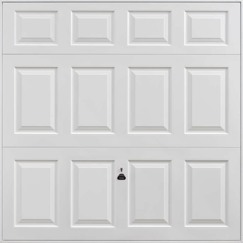Garador Beaumont steel up and over garage door in white as standard but also available in other colours. Optional extras include a maintenance free steel frame and a 4 point locking upgrade.