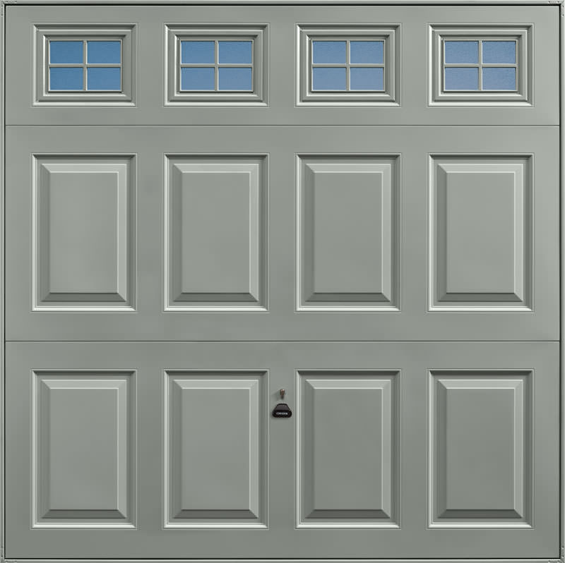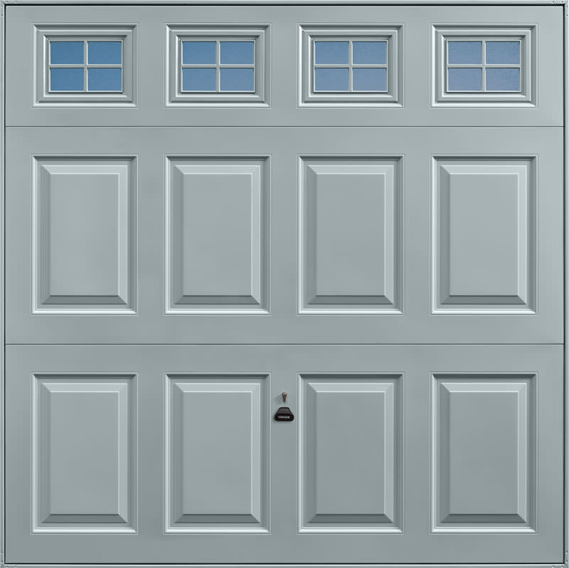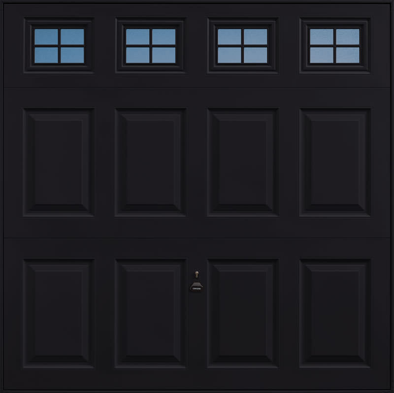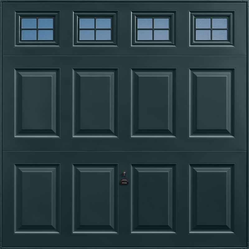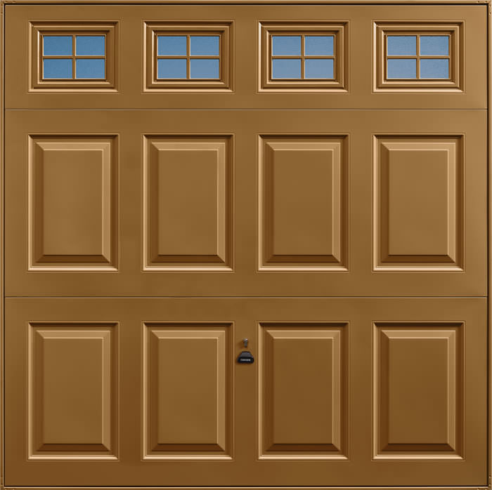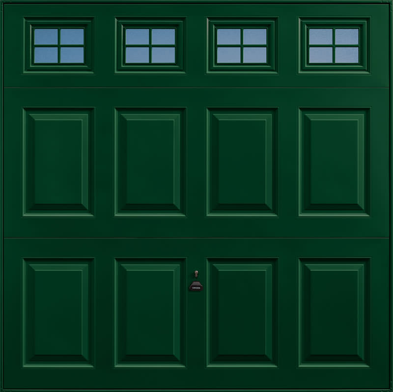 Garador Beaumont with windows steel up and over garage door in white as standard but also available in other colours. Optional extras include a maintenance free steel frame and a 4 point locking upgrade.