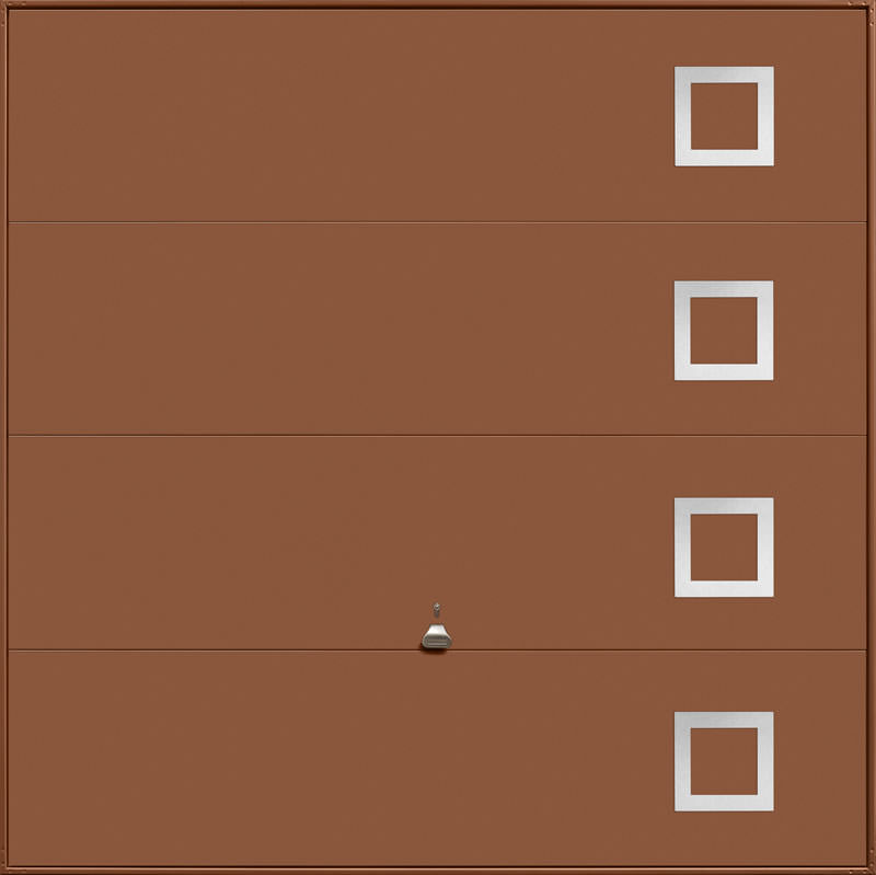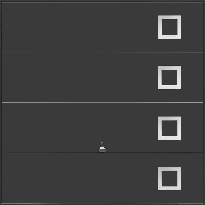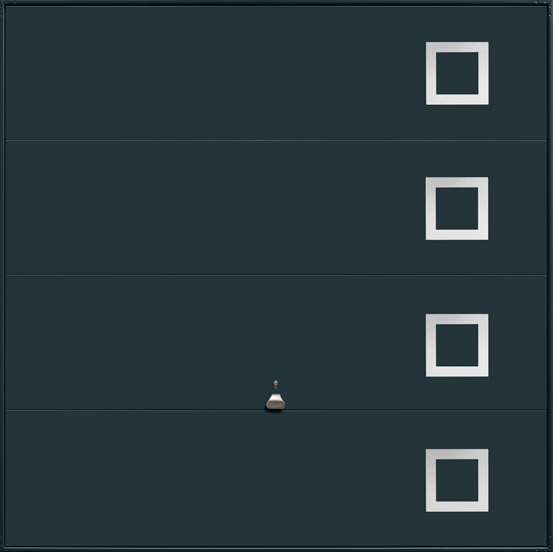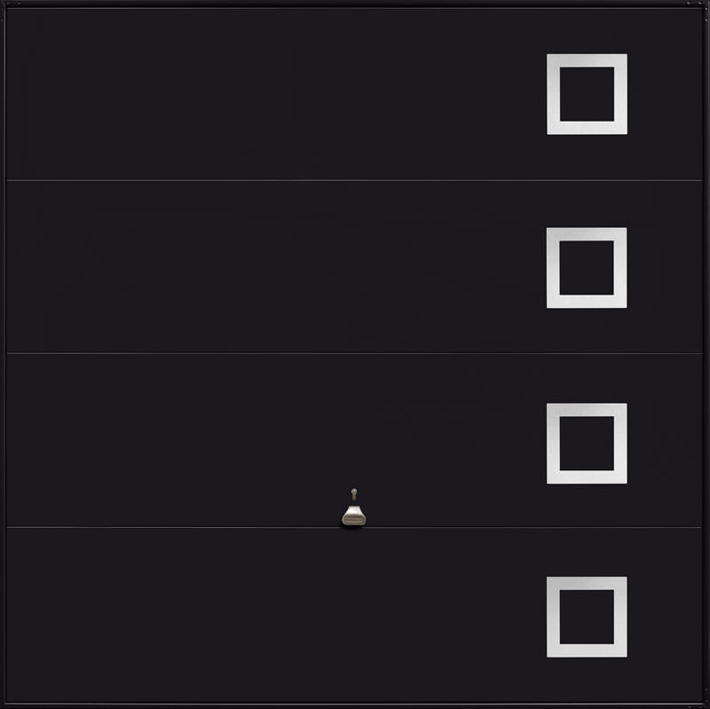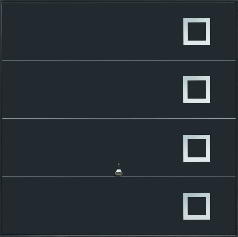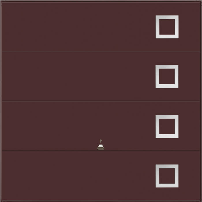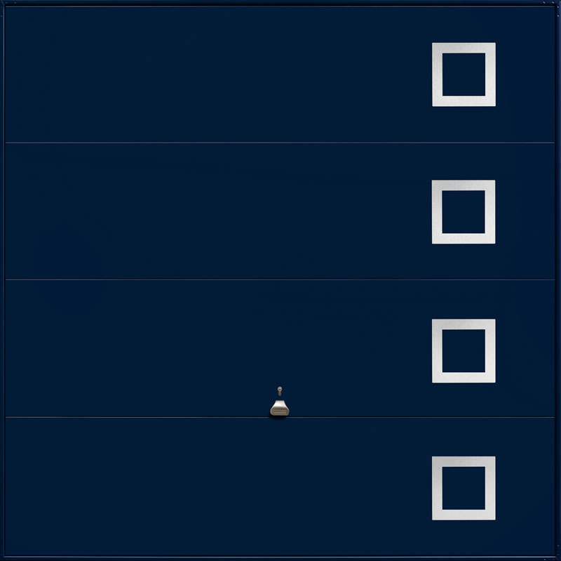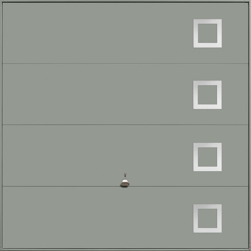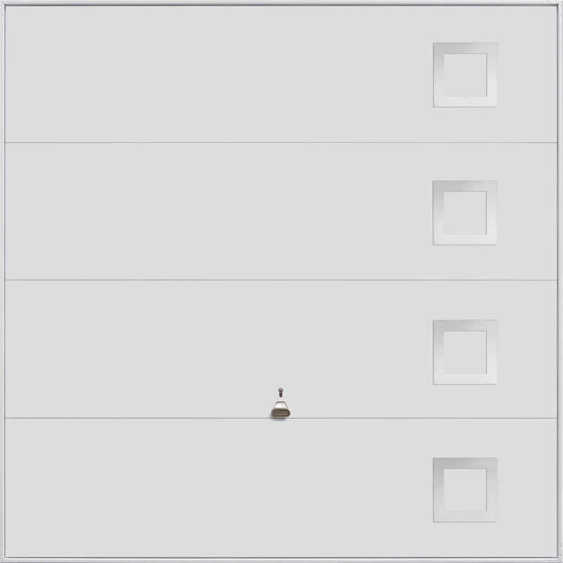 Garador Design 101 steel up and over door with stainless steel elements in white as standard but also available in other colours. Optional extras include a maintenance free steel frame and a 4 point locking upgrade.