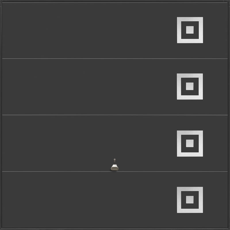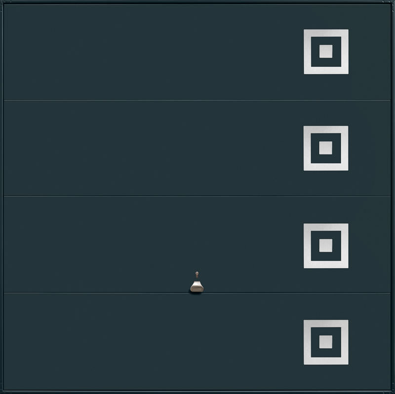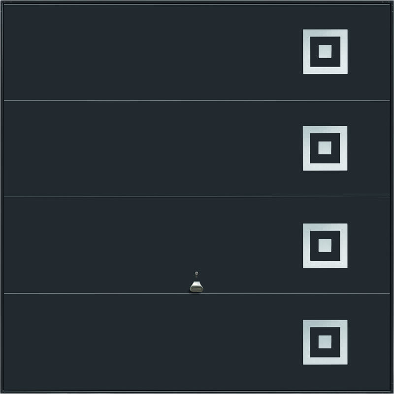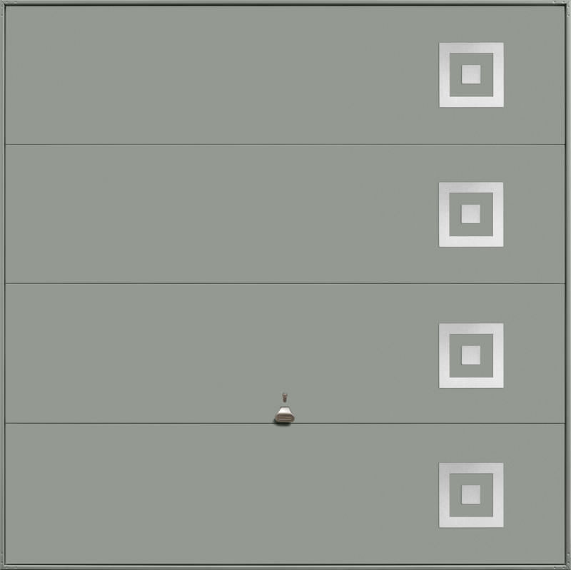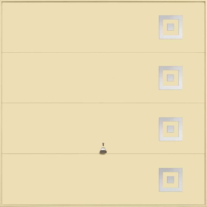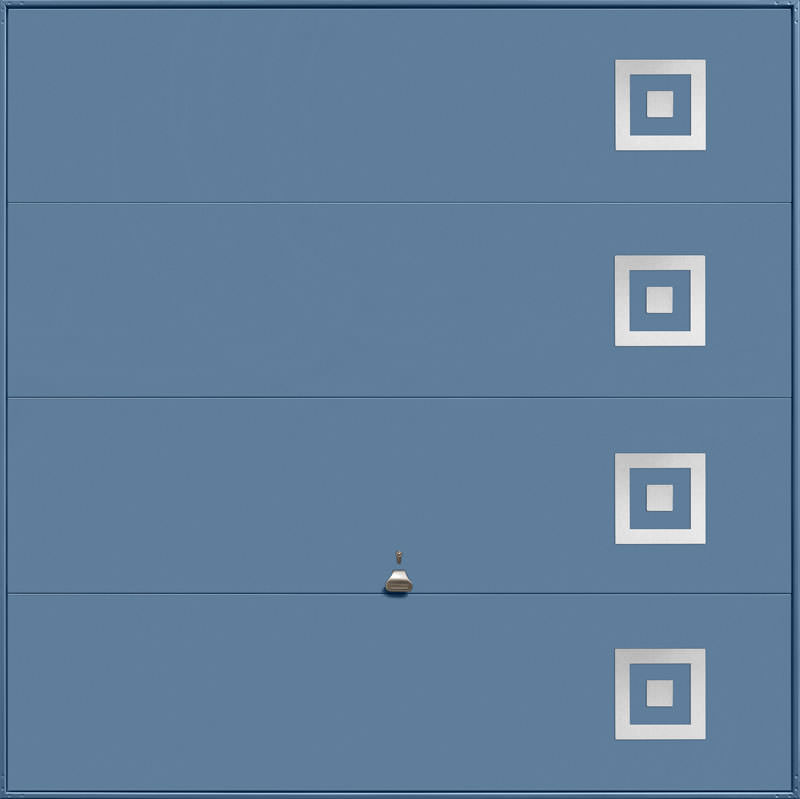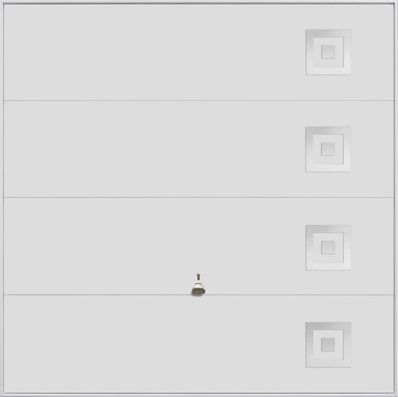 Garador Design 103 steel up and over door with stainless steel elements in white as standard but also available in other colours. Optional extras include a maintenance free steel frame and a 4 point locking upgrade.