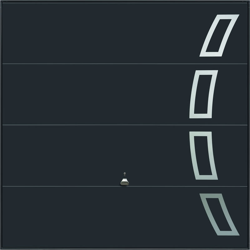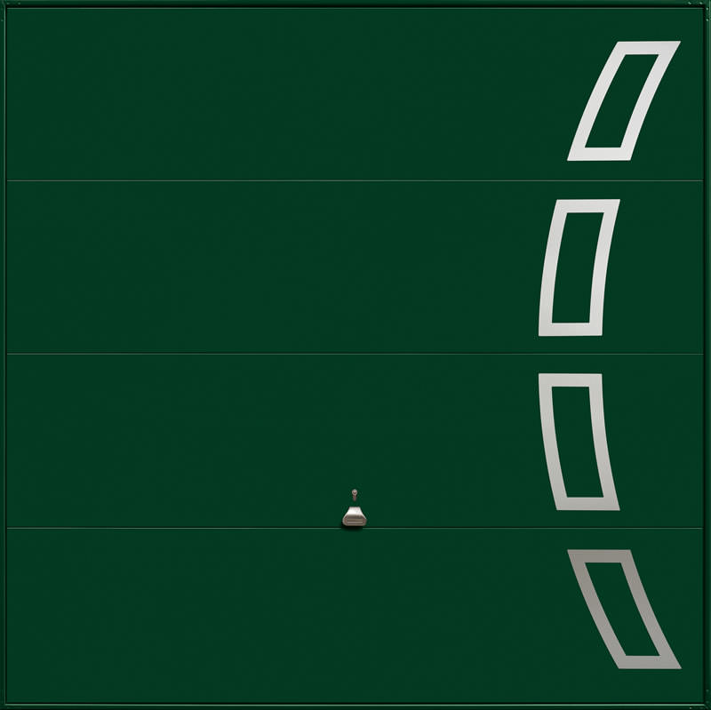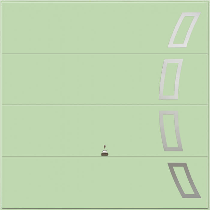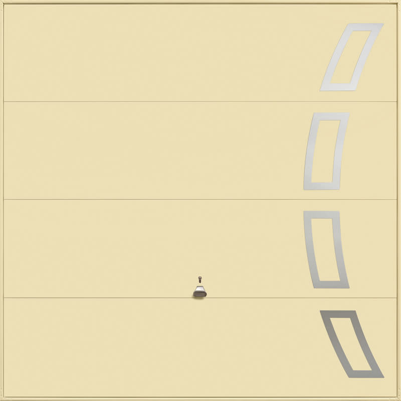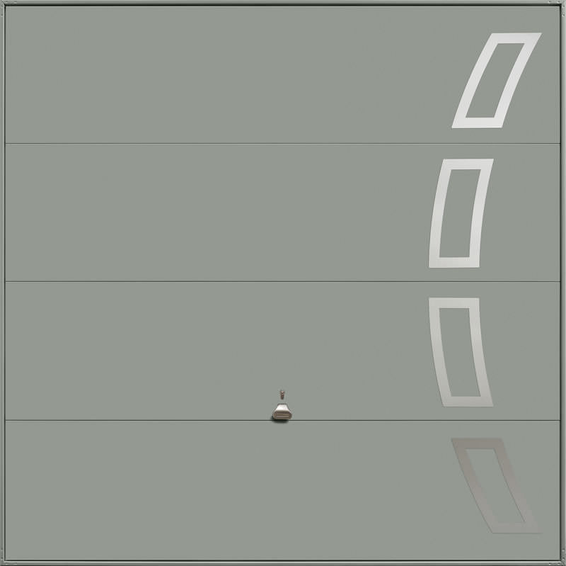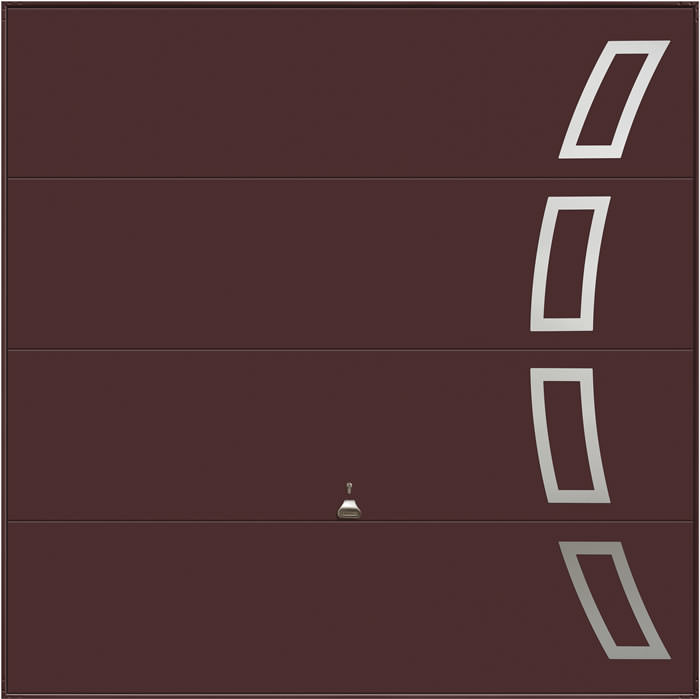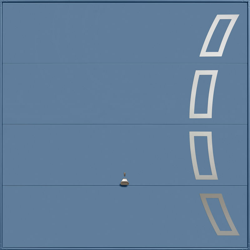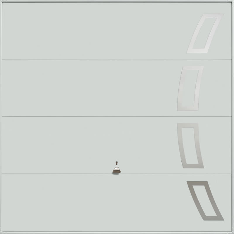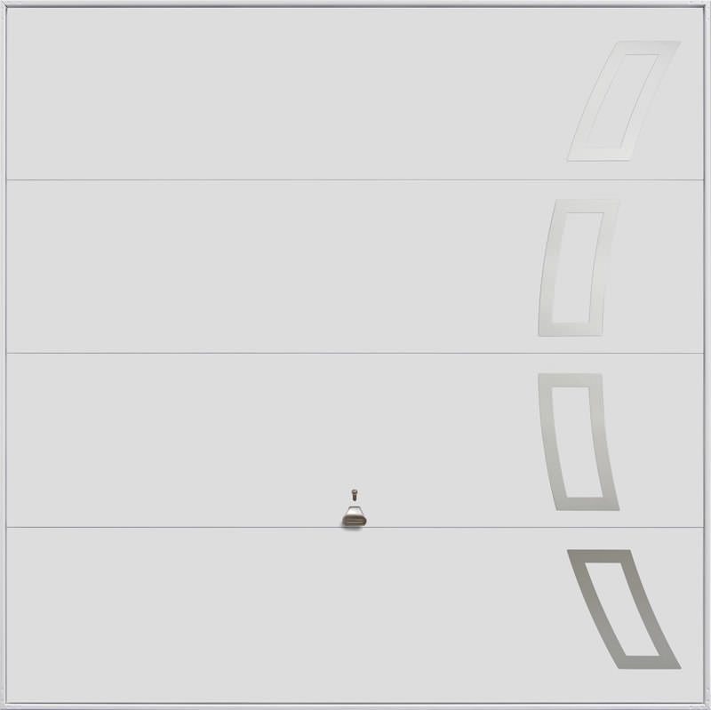 Garador Design 104 steel up and over door with stainless steel elements in white as standard but also available in other colours. Optional extras include a maintenance free steel frame and a 4 point locking upgrade.