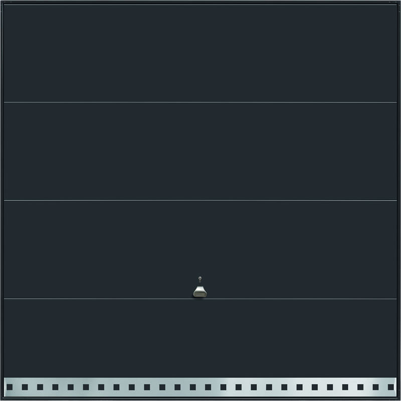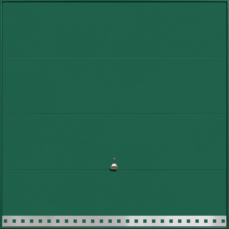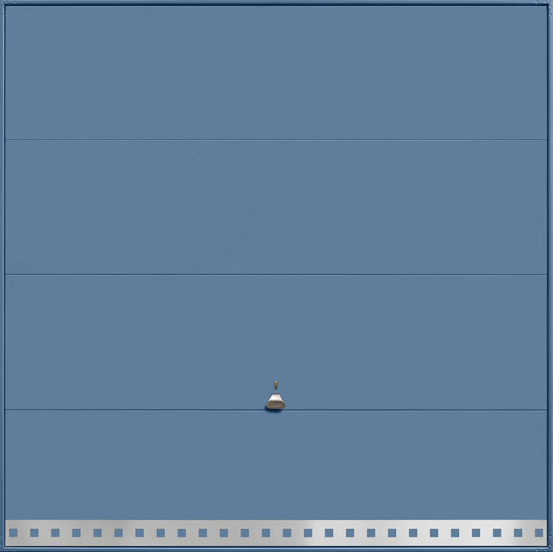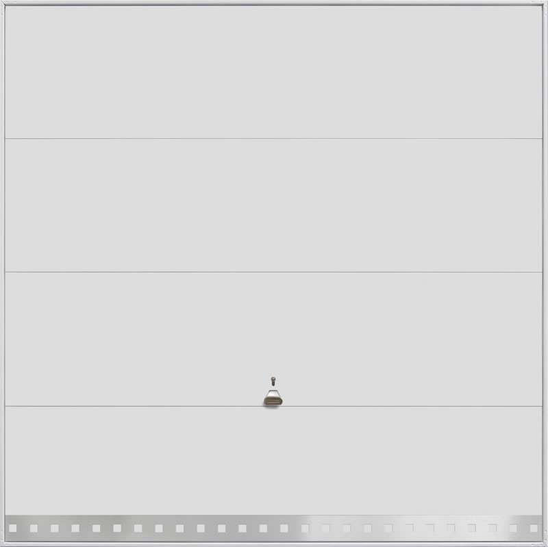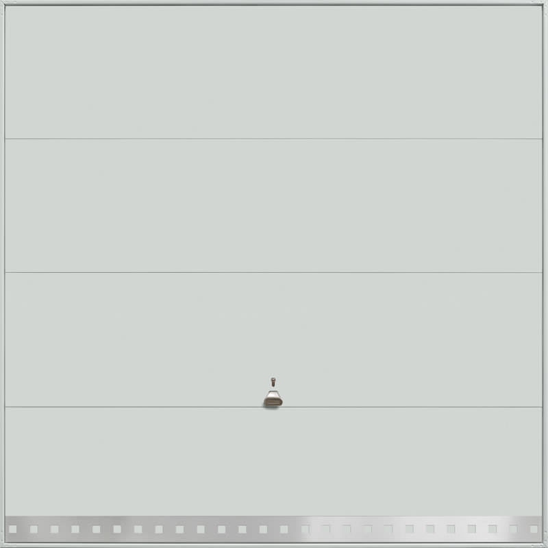 Garador Design 107 steel up and over door with stainless steel elements in white as standard but also available in other colours. Optional extras include a maintenance free steel frame and a 4 point locking upgrade.