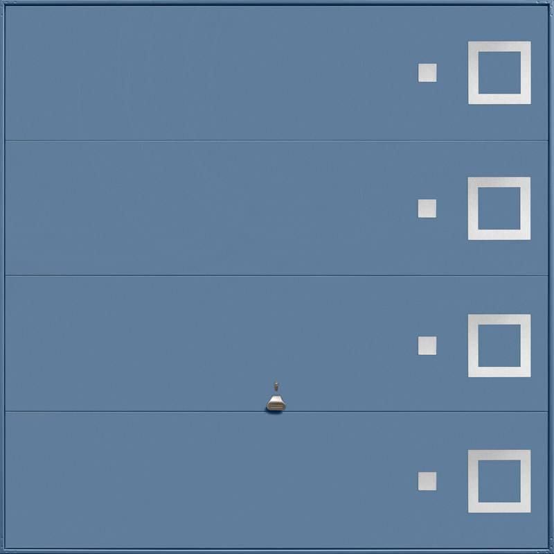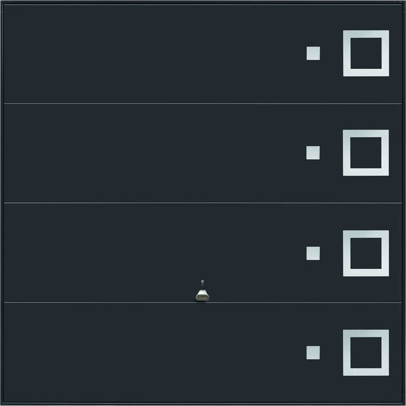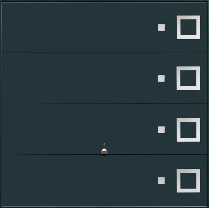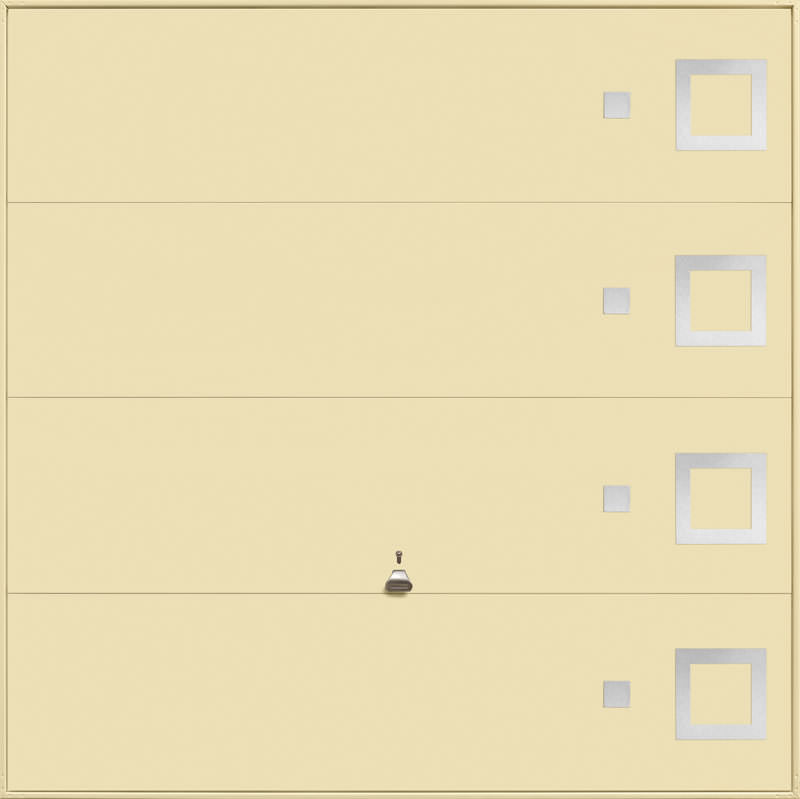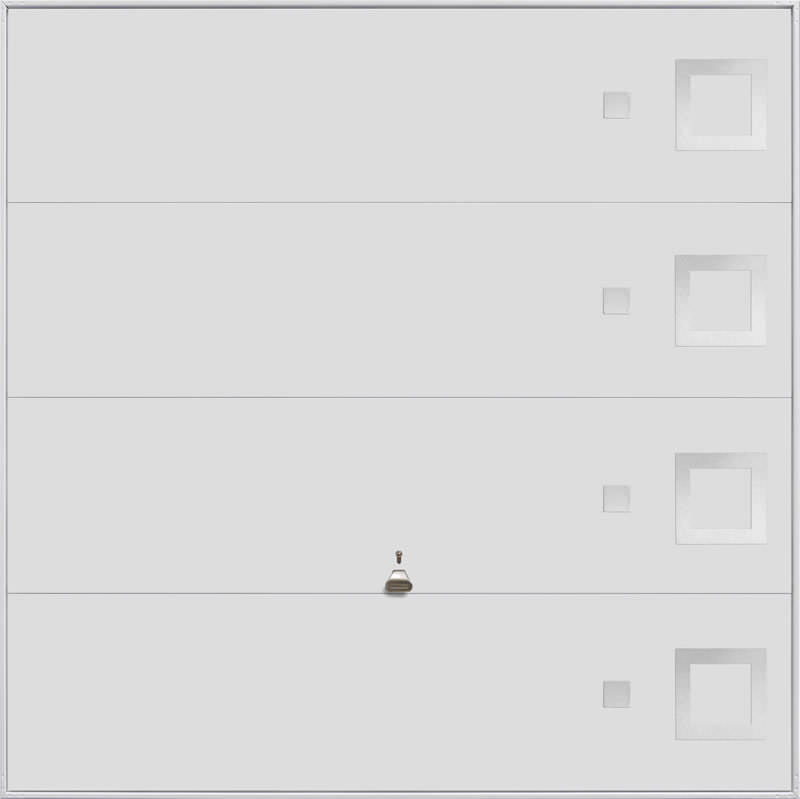 Garador Design 108 steel up and over door with stainless steel elements in white as standard but also available in other colours. Optional extras include a maintenance free steel frame and a 4 point locking upgrade.