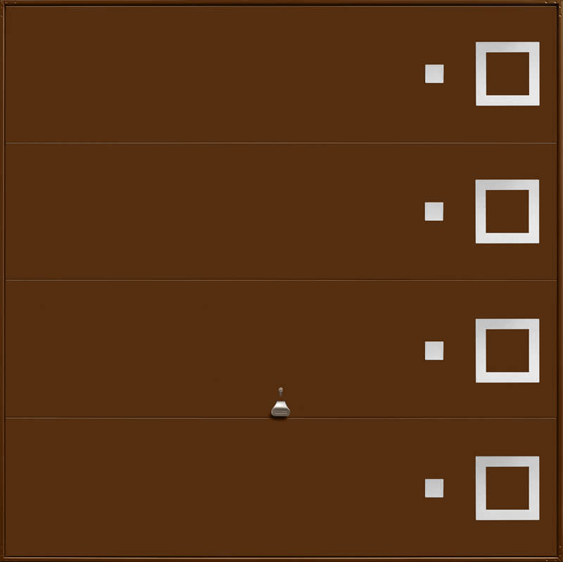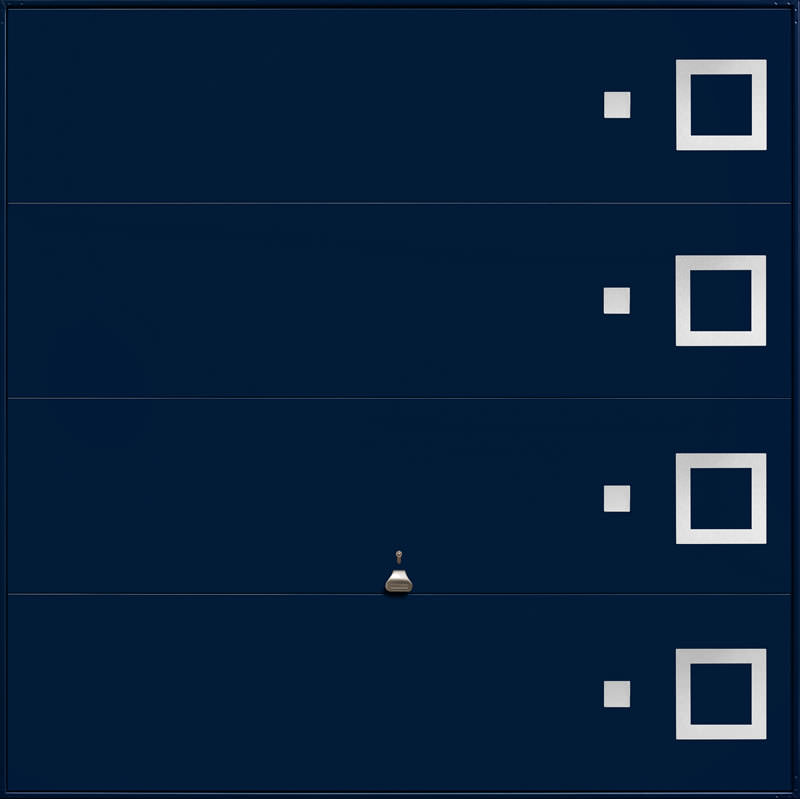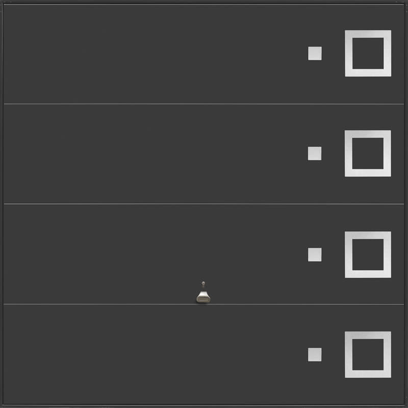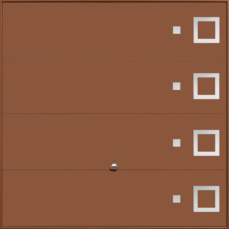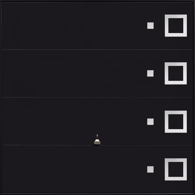 Garador Design 108 steel up and over door with stainless steel elements in white as standard but also available in other colours. Optional extras include a maintenance free steel frame and a 4 point locking upgrade.