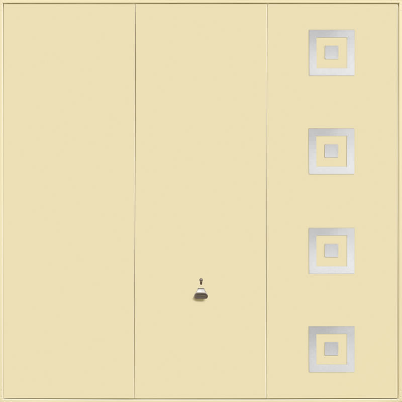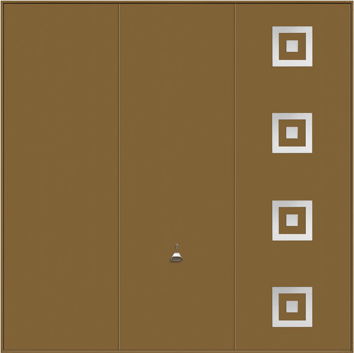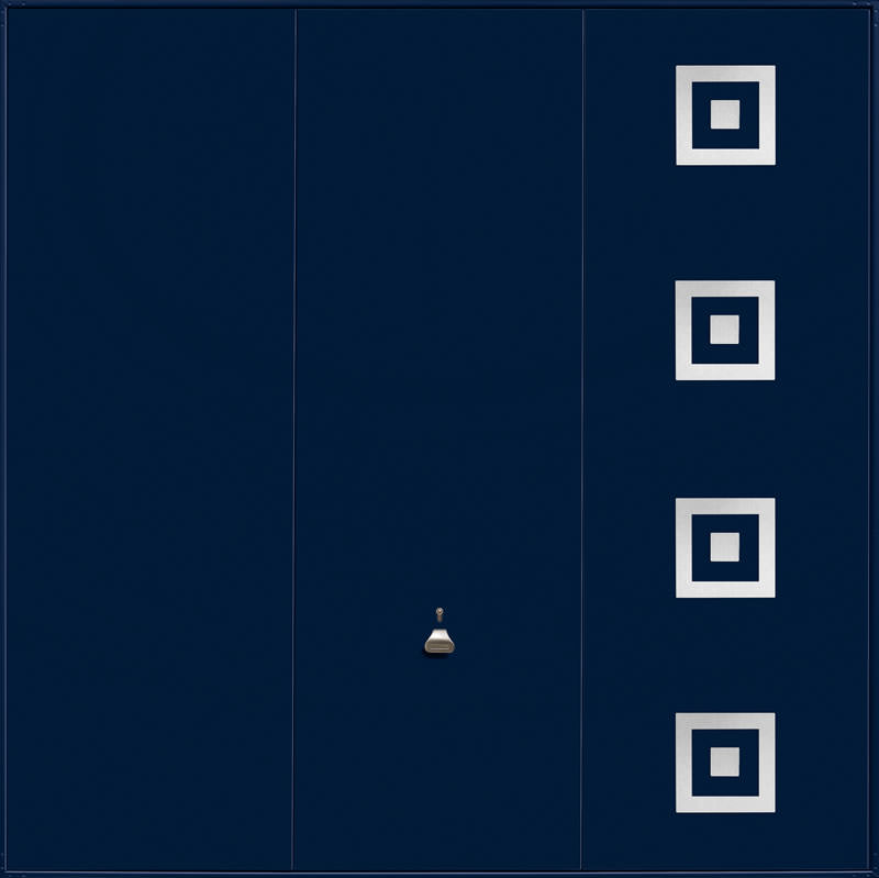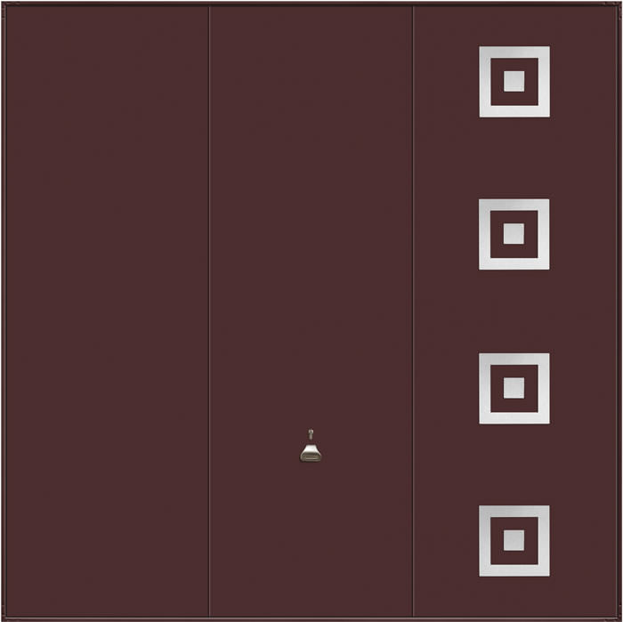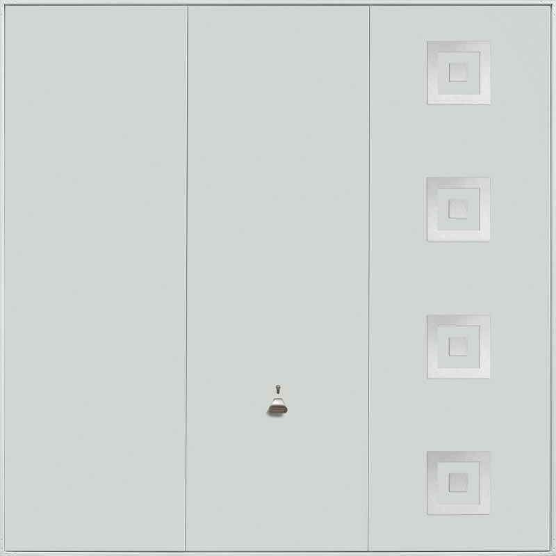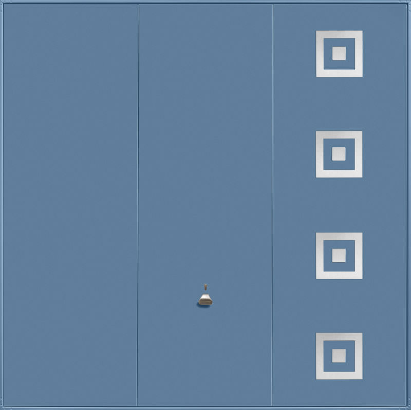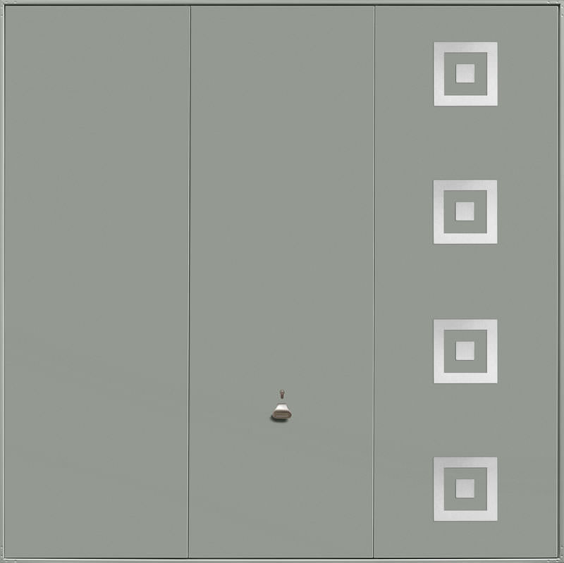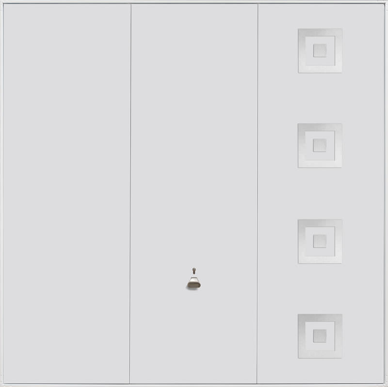 Garador Design 203 steel up and over door with stainless steel elements in white as standard but also available in other colours. Optional extras include a maintenance free steel frame and a 4 point locking upgrade.
