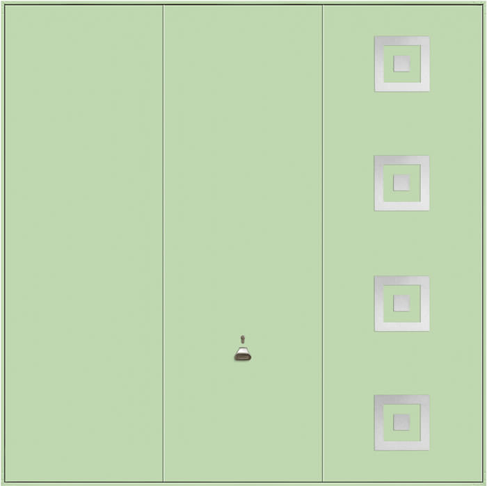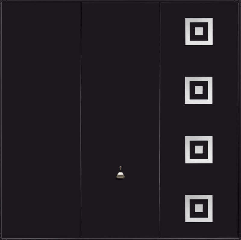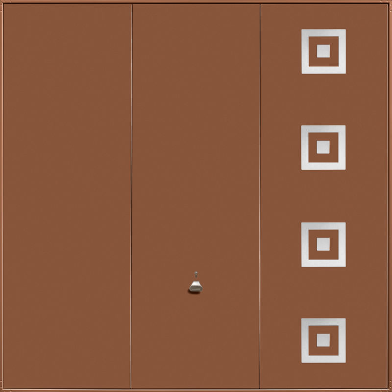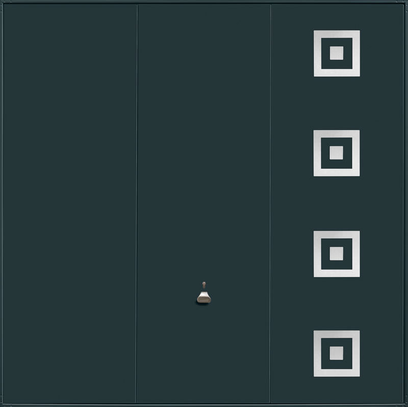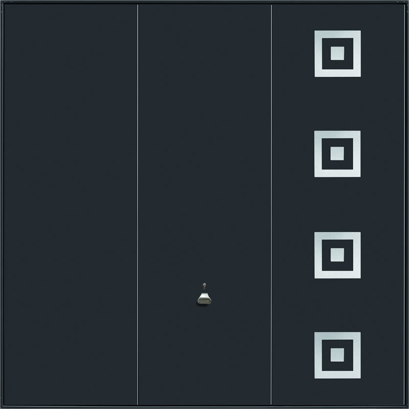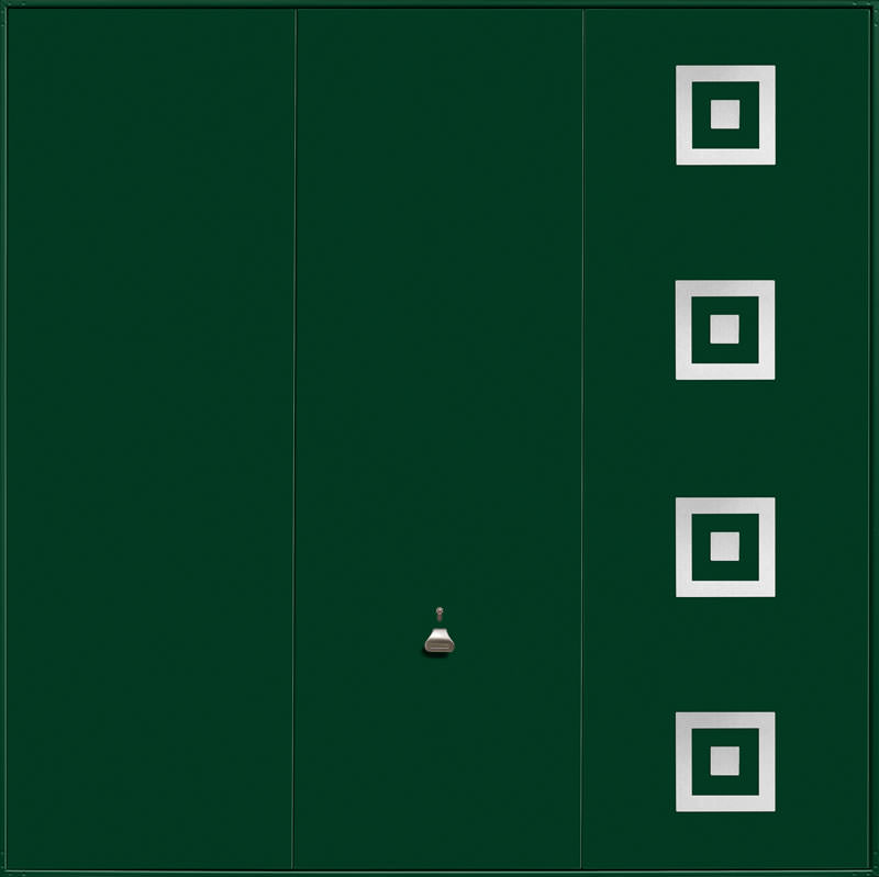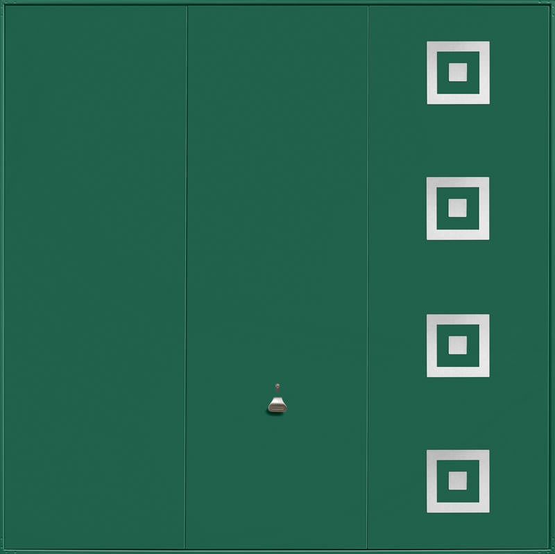 Garador Design 203 steel up and over door with stainless steel elements in white as standard but also available in other colours. Optional extras include a maintenance free steel frame and a 4 point locking upgrade.