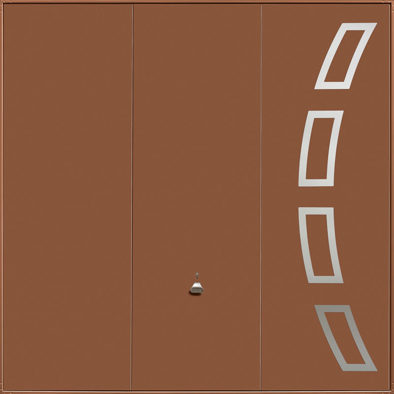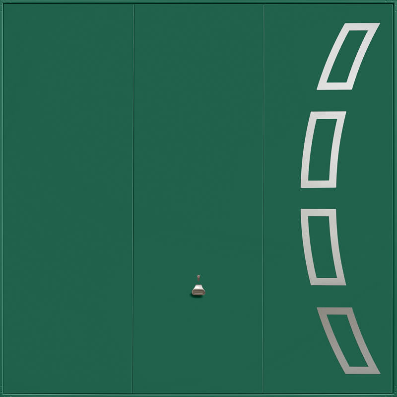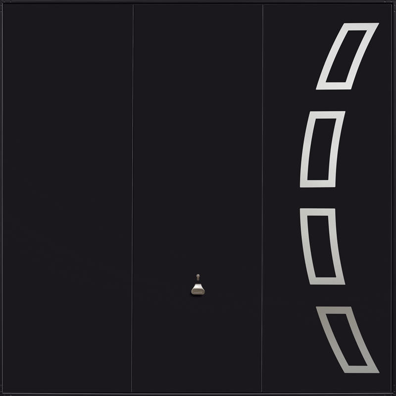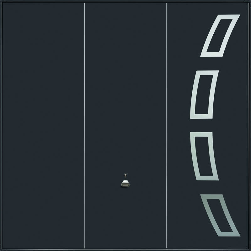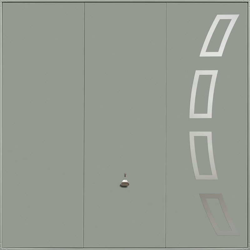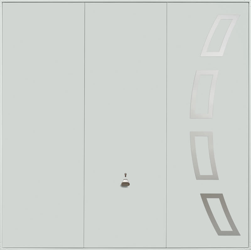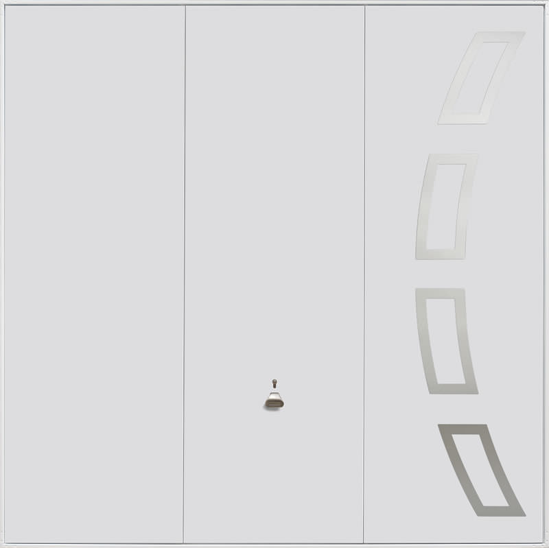 Garador Design 204 steel up and over door with stainless steel elements in white as standard but also available in other colours. Optional extras include a maintenance free steel frame and a 4 point locking upgrade.