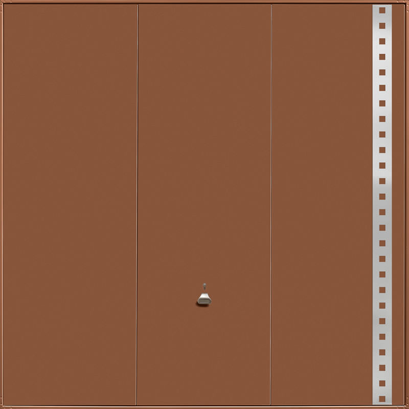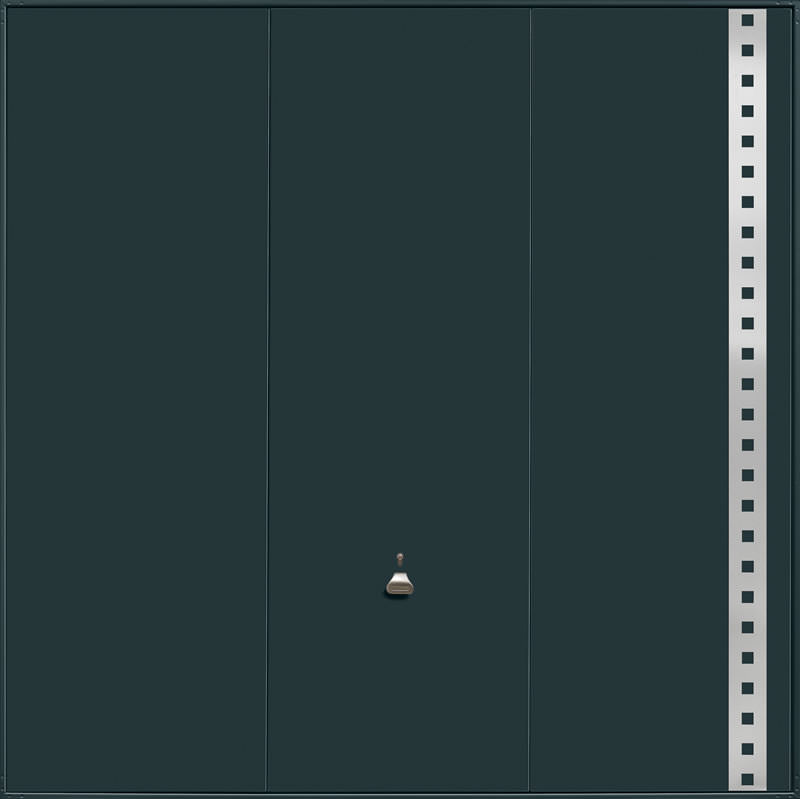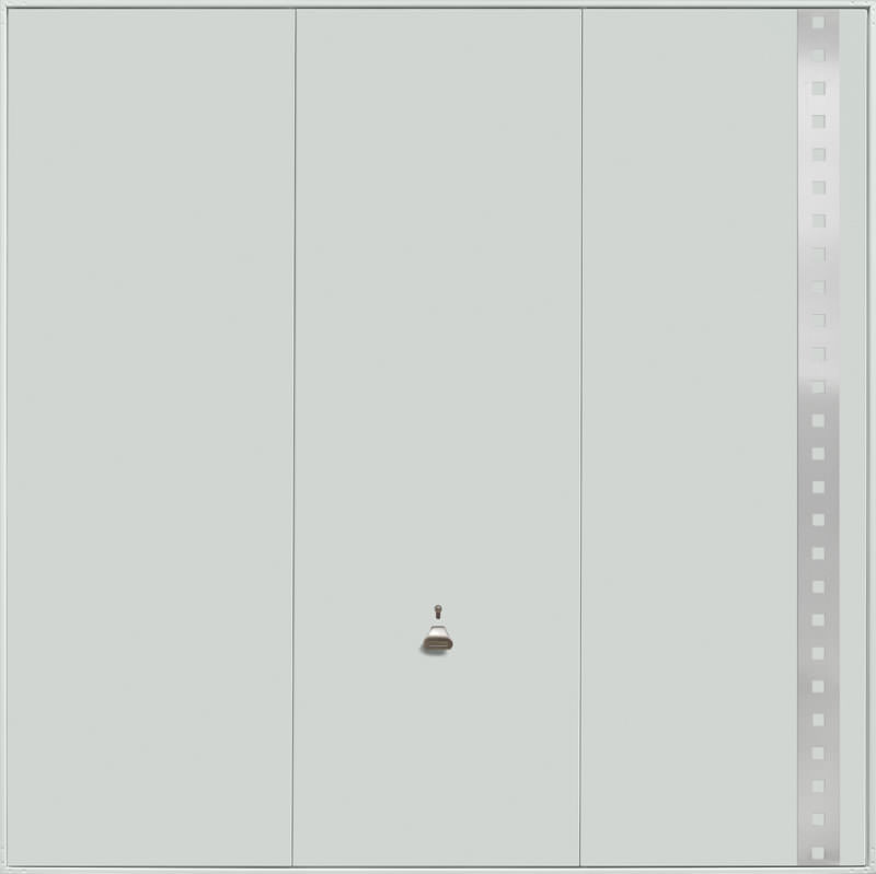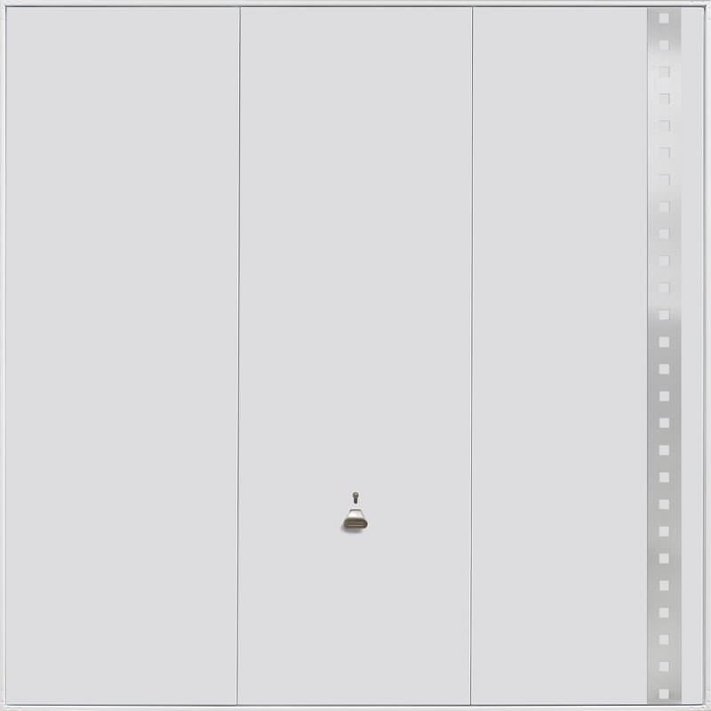 Garador Design 207 steel up and over door with stainless steel elements in white as standard but also available in other colours. Optional extras include a maintenance free steel frame and a 4 point locking upgrade.
