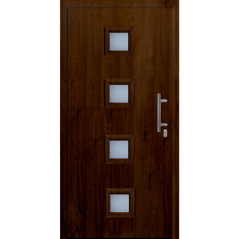 Garador FrontGuard 030 Steel Entrance Door in Timber-effect Dark Oak, also available in a range of other colours and finishes. All Garador FrontGuard doors come with break in resistant RC 2 security equipment and 5 point security lock. The door panel is filled with highly efficient insulating foam to provide excellent thermal insulation for your home and are equipped with double glazing as standard.