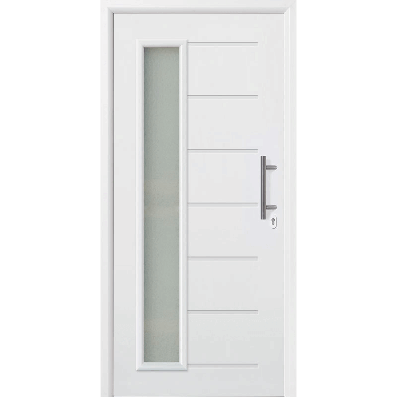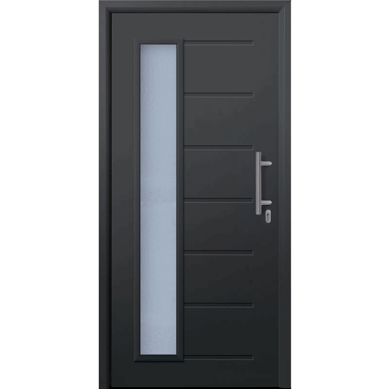 Garador FrontGuard Plus 025 Steel Entrance Door in Titan metallic effect surface finish, also available in a range of other colours and finishes. All Garador FrontGuard Plus doors come with break in resistant RC 2 security equipment and 5 point security lock. The door panel is filled with highly efficient insulating foam to provide excellent thermal insulation for your home and are equipped with double glazing as standard.