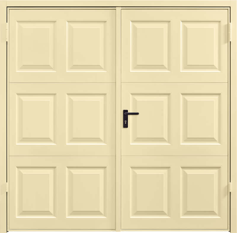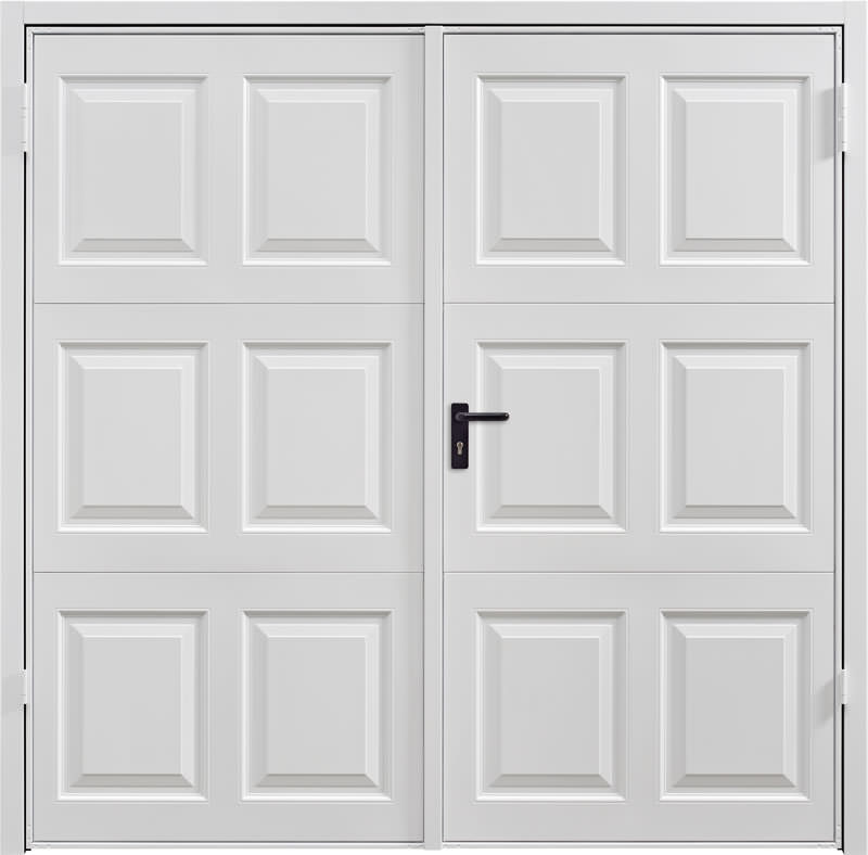 Garador Georgian side hinged garage door supplied as standard with a maintenance free steel frame. Doors are supplied in white as standard with a further 6 colours available as an option.