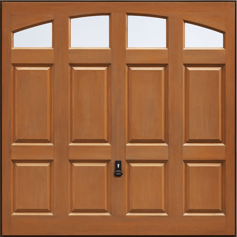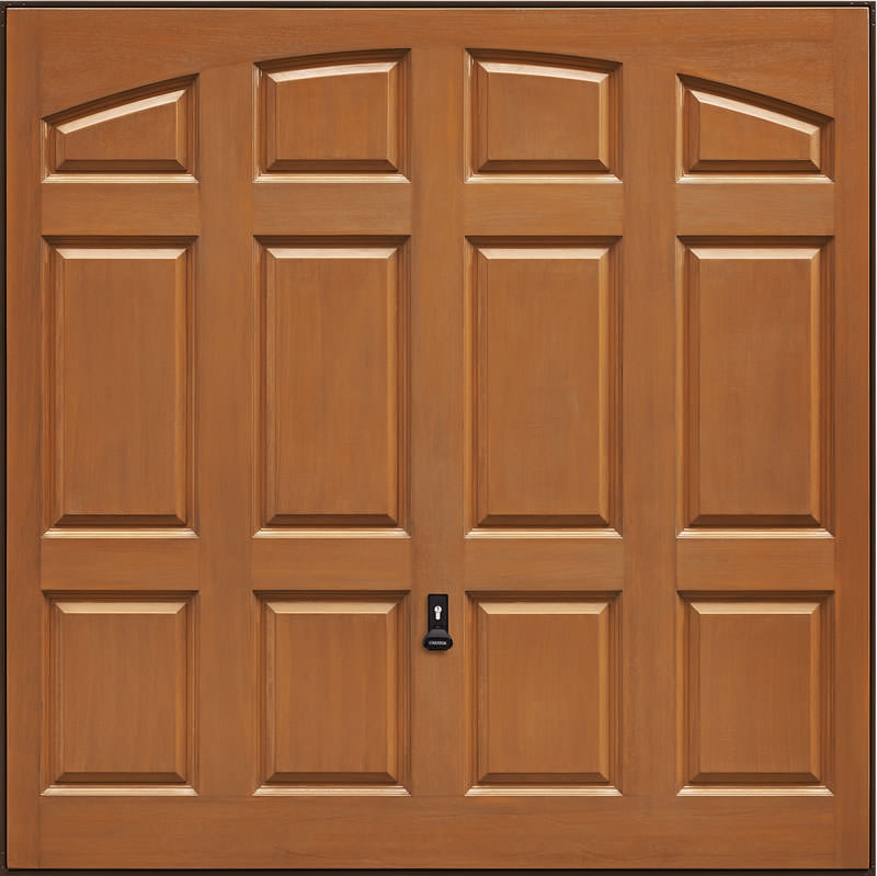 Garador Hazelbury fibreglass up and over garage door available in 8 woodgrain finishes. Optional extras include a maintenance free steel frame and a 4 point locking upgrade. Window options are also available on this door.