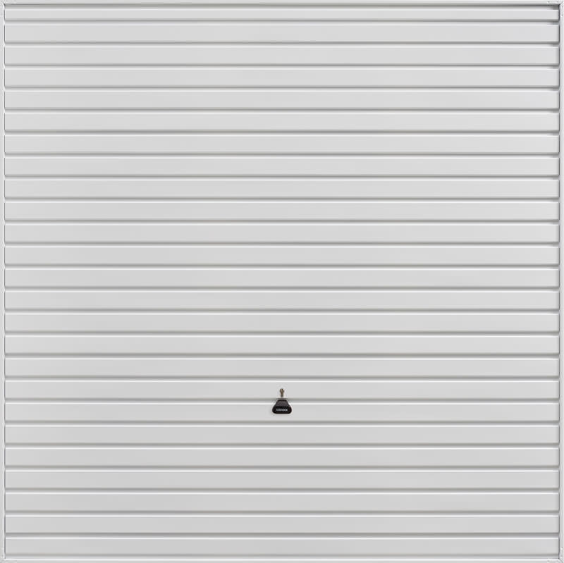 Garador Horizon steel up and over garage door in white as standard but also available in other colours. Optional extras include a maintenance free steel frame and a 4 point locking upgrade.