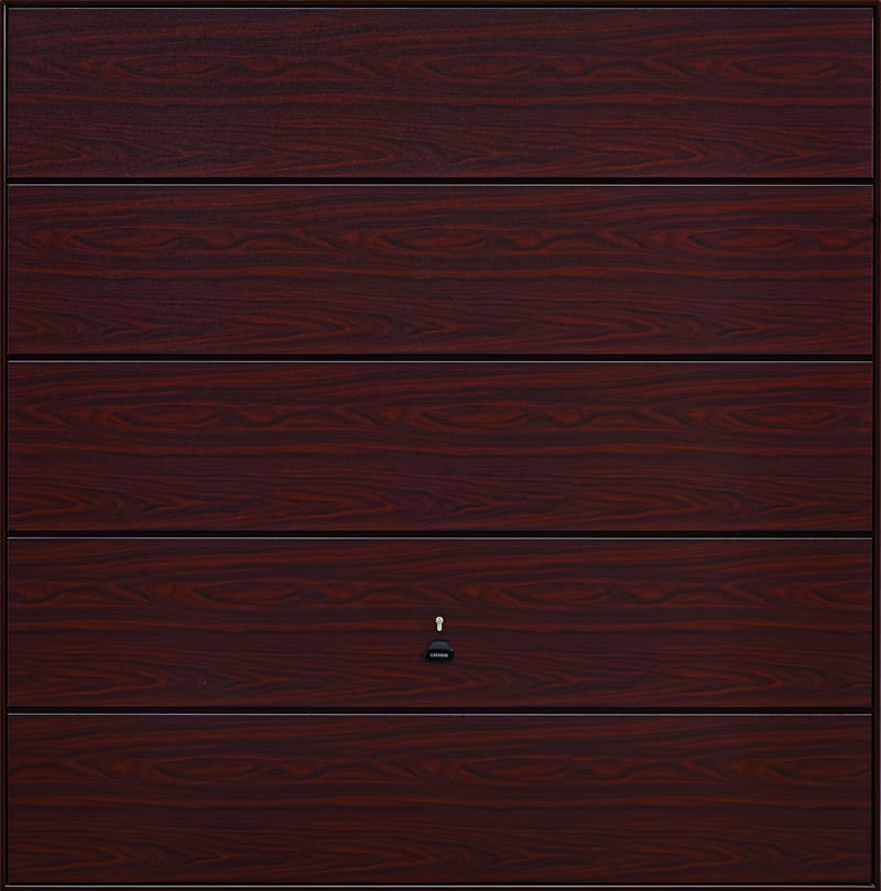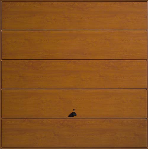 Garador Wentwood steel up and over garage door in a laminate Rosewood or Golden Oak finish. Optional extras include a maintenance free steel frame and a 4 point locking upgrade.