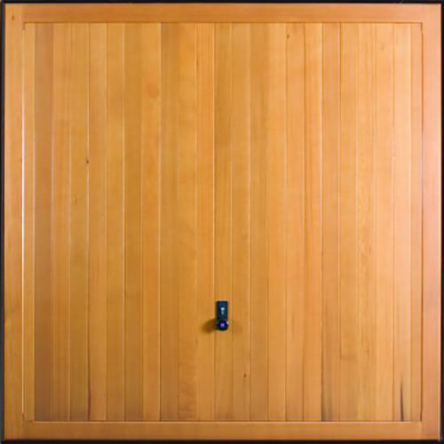 Hormann 2109 Mallory Vertical timber up and over garage door base coat finished as standard with the option of factory finished pre-staining in 9 different colours. Other options include a maintenance free steel frame and a 4 point locking upgrade.