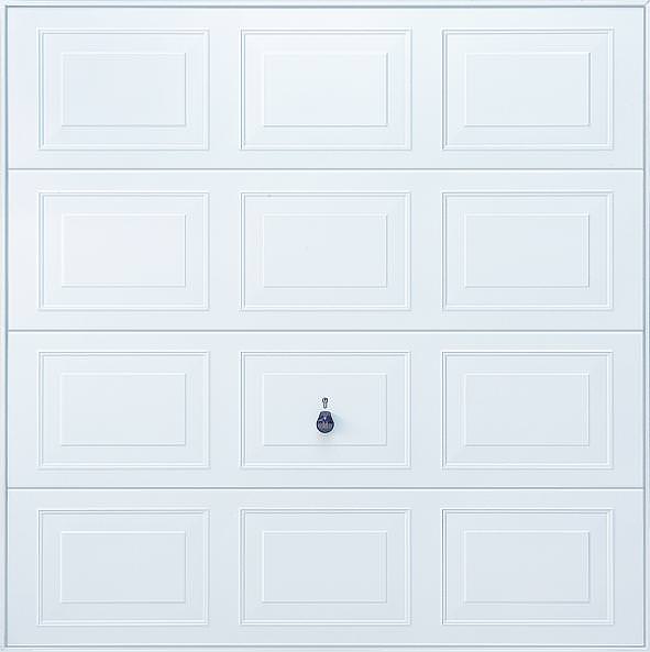 Hormann 2504 Countess steel up and over garage door in white as standard but also available in other colours. Optional extras include a maintenance free steel frame and a 4 point locking upgrade.