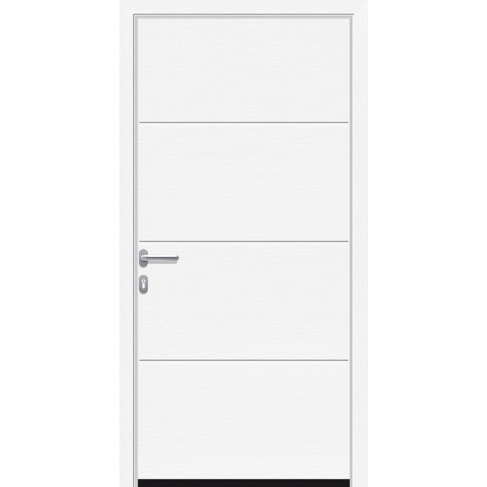 Hormann L-ribbed insulated personnel door supplied as standard with a maintenance free steel frame. This door offers thermal insulation and is available in various styles, colours and surface finishes to match your garage door. Optional extras include 3 point locking.