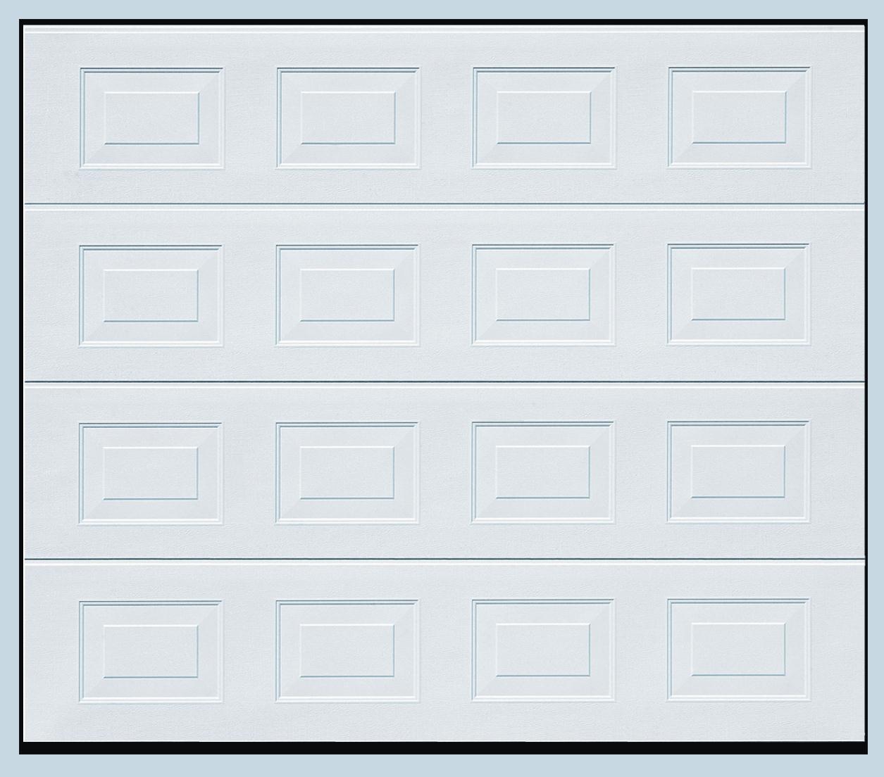 Hormann LPU42 S Panelled Woodgrain sectional garage door. Supplied in white as standard but also available in a wide range of optional colours. This door is available as a single skin, 20mm or 42mm insulated door with both options having rubber weather seals all round the door.