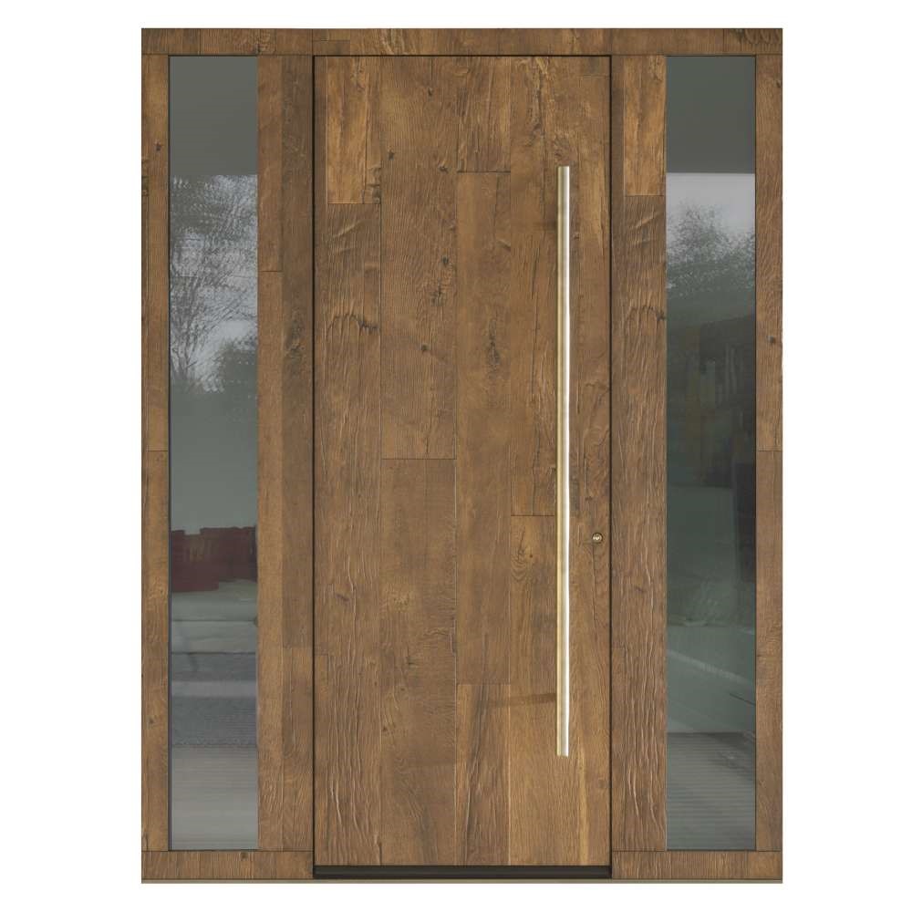 Ryterna RD100 aluminium entrance door style 1040 wood plate. All doors are made to measure with a range of panel designs, colours, handles, locking & windows.