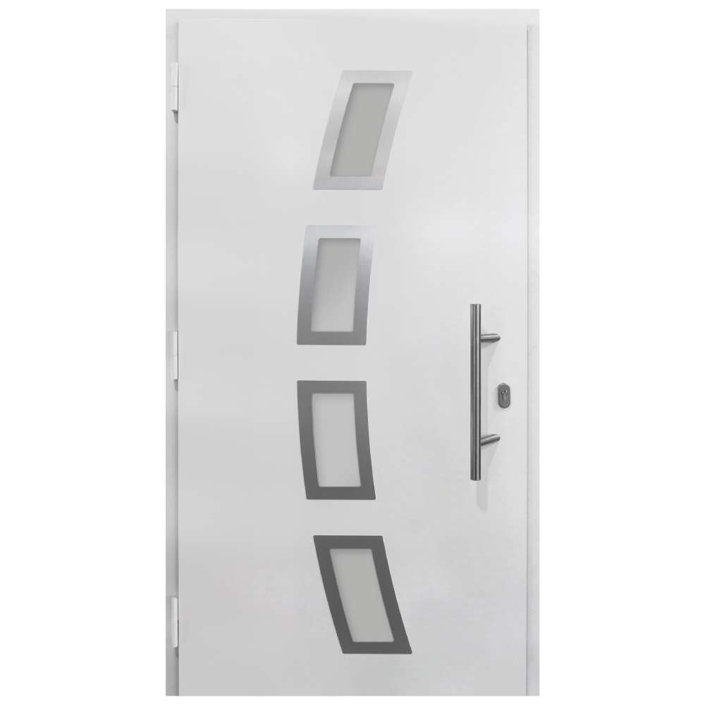 Ryterna RD67 steel entrance door style 115 in ral colour 9016 mat. All doors are made to measure with a range of panel designs, colours, handles, locking & windows.