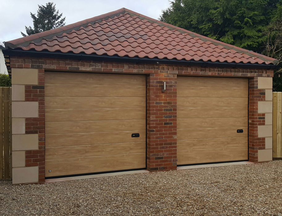 Ryterna sectional garage door. Durable and reliable system with ball bearing rollers, safe track system, reinforced frame with finger protection, anti-pinching panels – outside and inside.