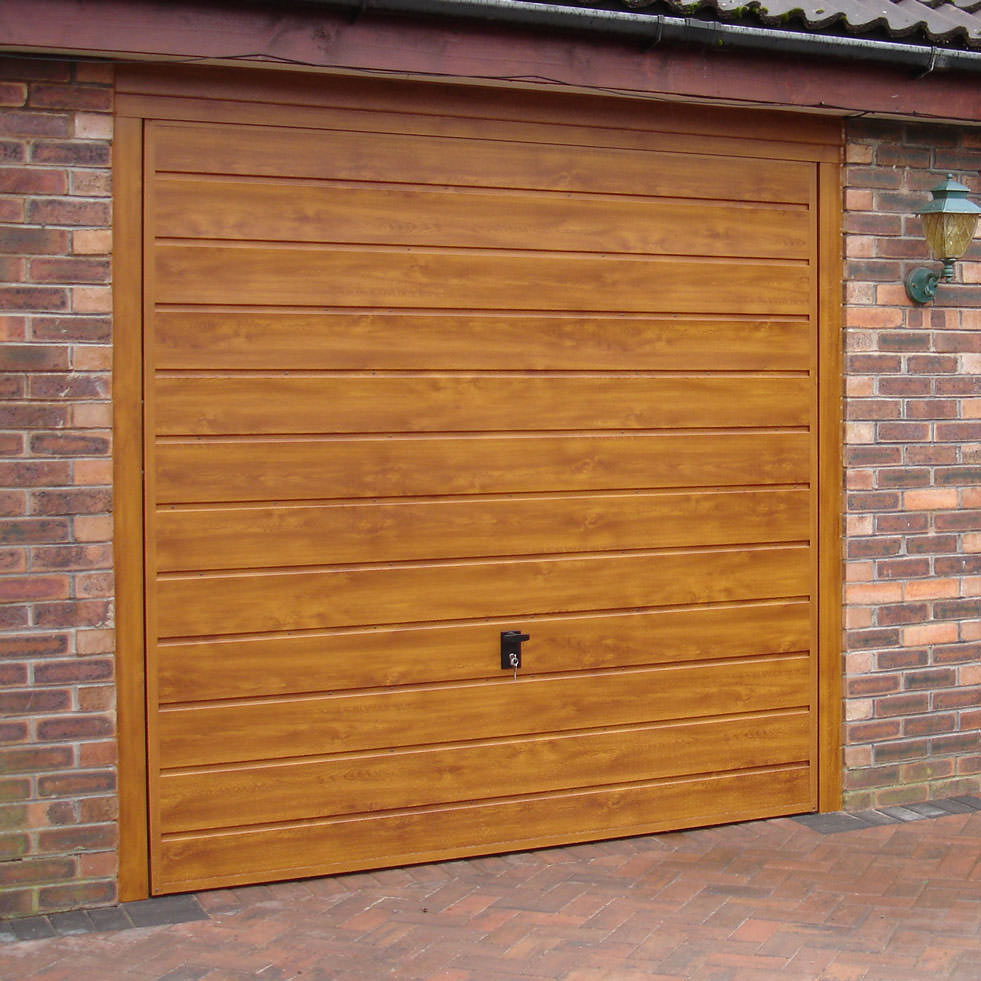 Select Adlington steel up and over garage door. Door is primed as standard ready for on-site finishing with the option of a factory textured powder coat finish in Signal White, Vandyke Brown, Jet Black, Light Ivory, Cobalt Blue, Moss Green, Ruby Red or Antracite Grey. Additional options include a maintenance free steel frame and high security euro locking