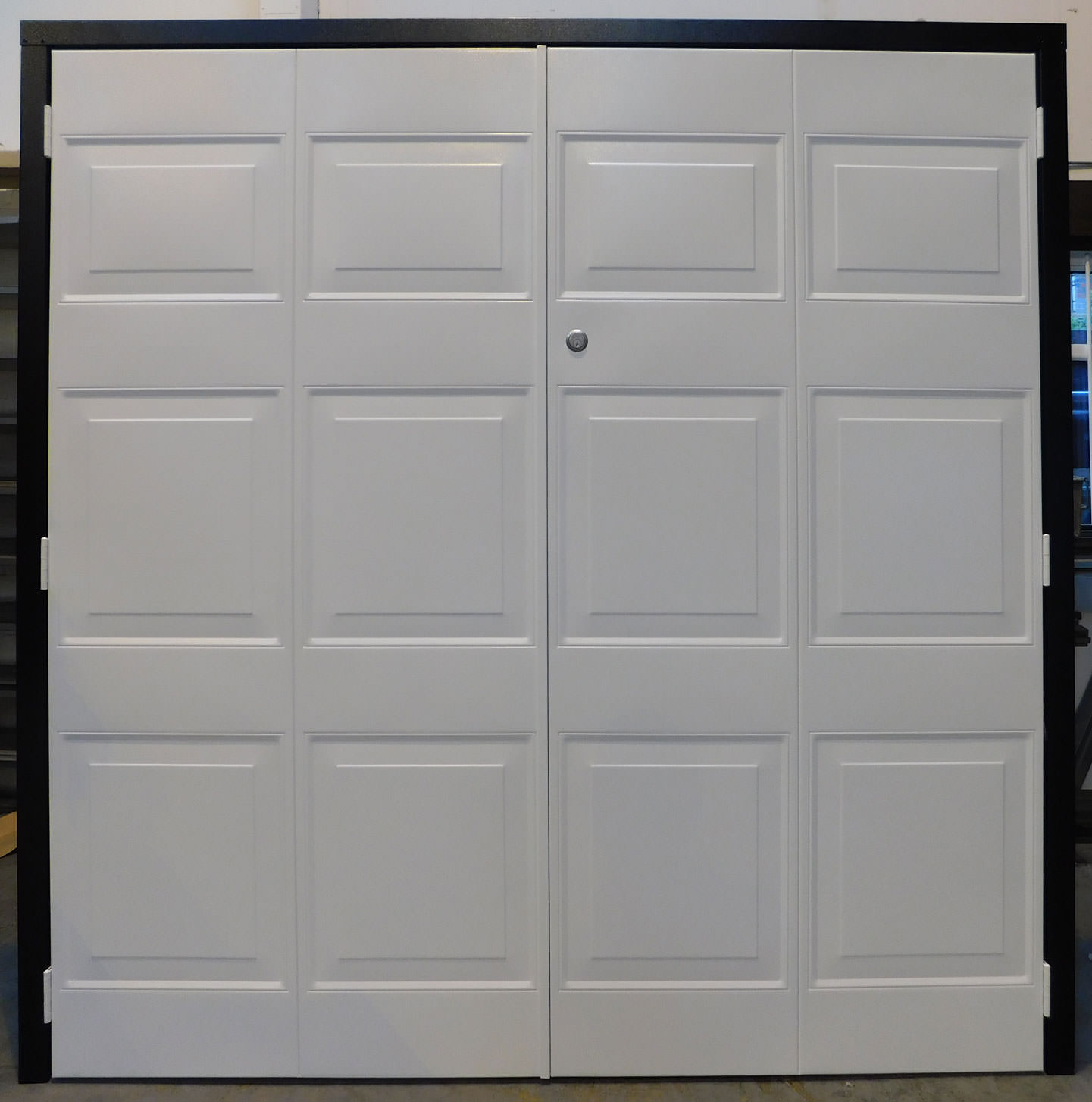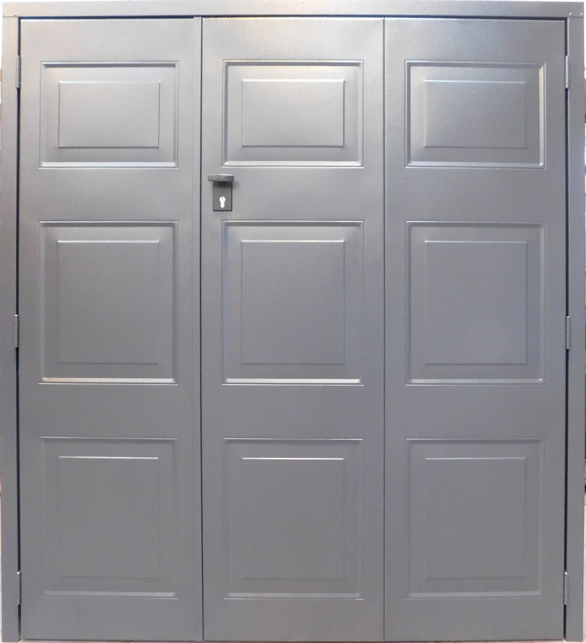 Select Bowden steel side hinged garage door. Door can be split 1/2 & 1/2 or 2/3 & 1/3. Door is primed as standard ready for on-site finishing with the option of a factory textured powder coat finish in Signal White, Vandyke Brown, Jet Black, Light Ivory, Cobalt Blue, Moss Green, Ruby Red or Antracite Grey. Additional options include a maintenance free steel frame and high security euro locking