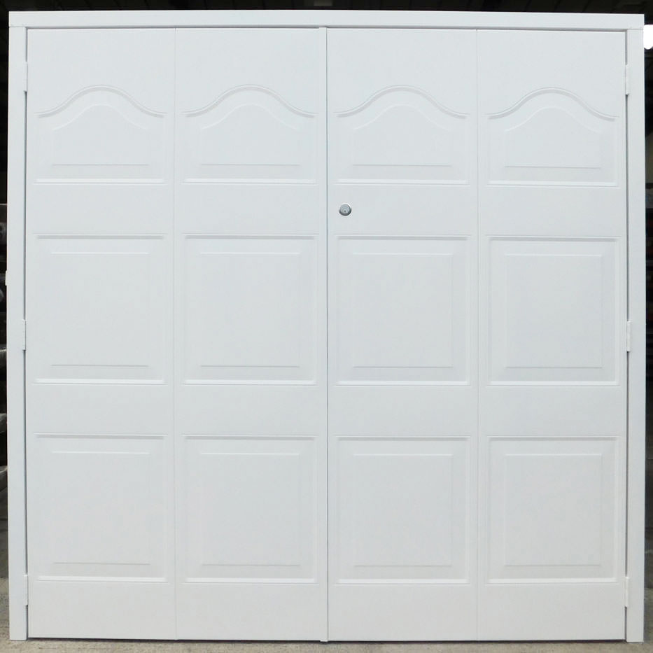 Select Derwent steel side hinged garage door. Door can be split 1/2 & 1/2 or 2/3 & 1/3. Door is primed as standard ready for on-site finishing with the option of a factory textured powder coat finish in Signal White, Vandyke Brown, Jet Black, Light Ivory, Cobalt Blue, Moss Green, Ruby Red or Antracite Grey. Additional options include a maintenance free steel frame and high security euro locking
