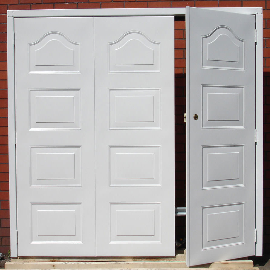 Select Marple steel side hinged garage door. Door can be split 1/2 & 1/2 or 2/3 & 1/3. Door is primed as standard ready for on-site finishing with the option of a factory textured powder coat finish in Signal White, Vandyke Brown, Jet Black, Light Ivory, Cobalt Blue, Moss Green, Ruby Red or Antracite Grey. Additional options include a maintenance free steel frame and high security euro locking