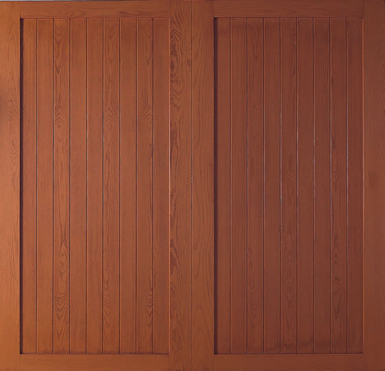 Wessex Frensham fibreglass up and over garage door. A woodgrain effect door available in 15 woodgarin colours with security locking as standard. Optional extras include a maintainance free steel frame