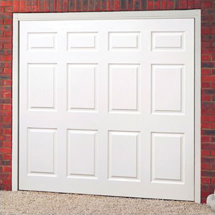 Wessex Georgian fibreglass up and over garage door.A white high gloss door supplied with security locking as standard. Optional extras include a maintainance free steel frame and various window options