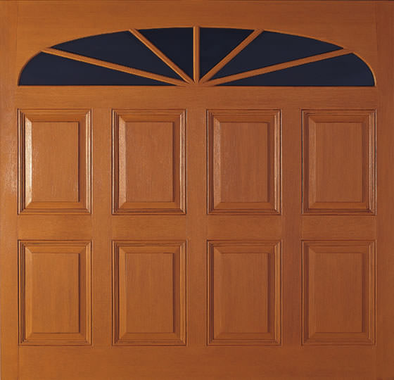 Wessex Purbeck fibreglass up and over garage door. A woodgrain effect door available in 15 woodgarin colours with security locking as standard. Optional extras include a maintainance free steel frame and various window options
